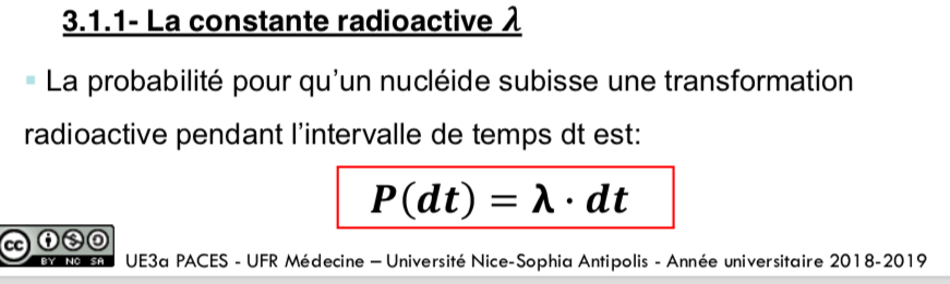 justement cette diapo nous dit bien que ce n'est pas la constance radioactive en elle même qui est une probabilité en fonction du temps (ou du temps d'observation). C'est bien la constante radioactive intégrée par rapport à la rapport temporelle (dt) soit P(lambda)...