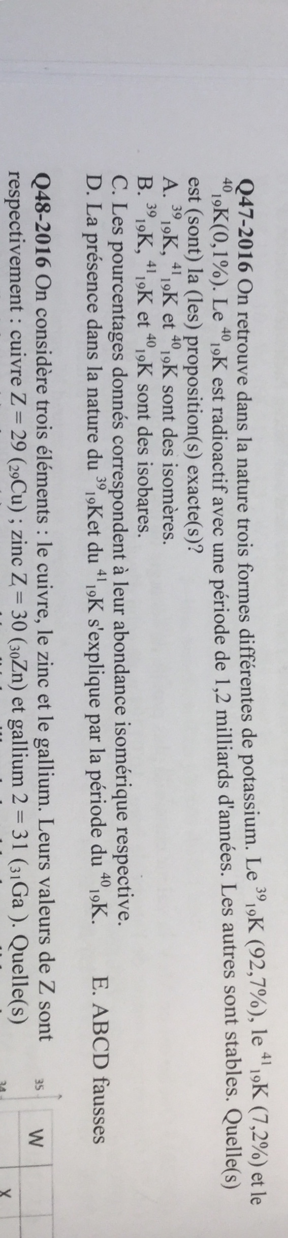 C'est parce qu'ils sont stables dans la nature donc ils seront présents à de concentrations assez importantes contrairement au potassium 40 qui a une période plutôt importante