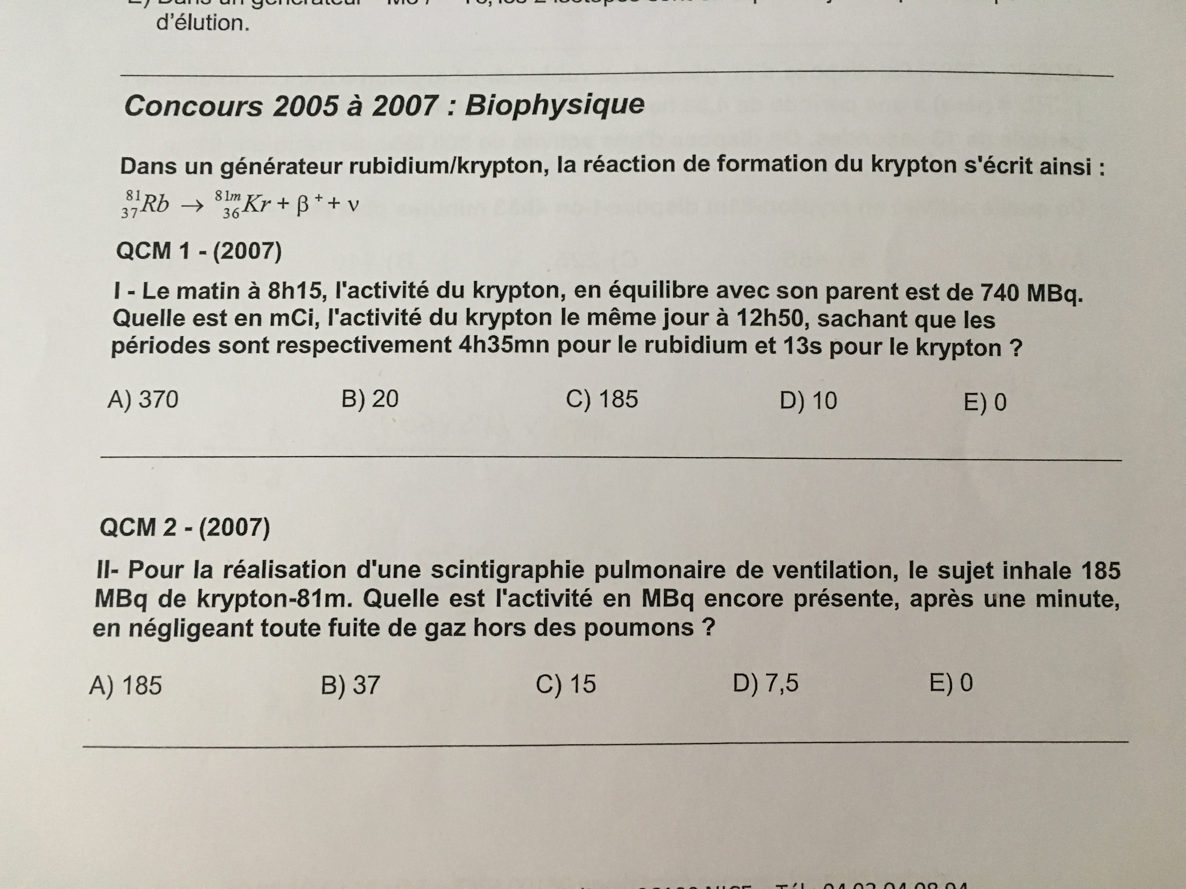4) 370 MBq = 10 mCi donc réponse D