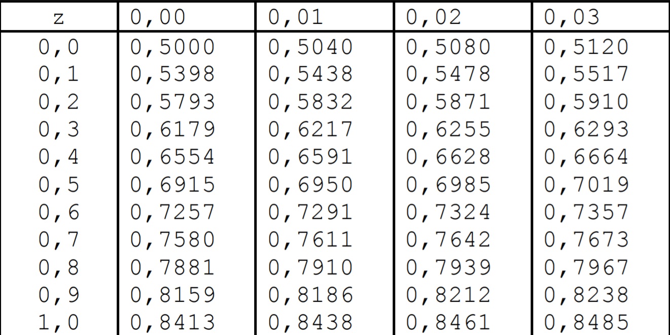 Je te remets une table de la loi normale centrée réduite pour l'exemple qui va suivre :