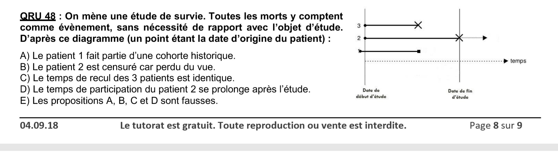 Mais dans la correction du qru 48 item B, il est écrit que le temps de recul est compris ente la date d'origine et la date de point, alors que le patient a lui aussi une date d'origine antérieure à la date de début d'étude.