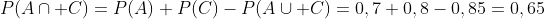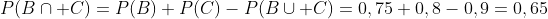 C'est exactement l'inverse de ce que l'on a fait au dessus ! En fait la probabilité que l'acheteur achète au moins une des trois options correspond à la probabilité P(A union B union C) (A ou B ou C : une seule option ou bien deux ou bien les trois !). Tu trouves cette probabilité dans l'énoncé : 0,95