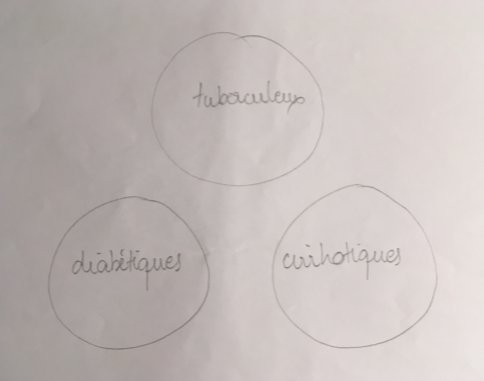 REMARQUE : la formule "P(A) + P(B) - 2xP(A inter B)" correspond au cas général de la différence symétrique. Mais dans ce QRU, ce n'était pas forcément nécessaire de l'appliquer : on te précisait dans l'énoncé que "chacun des patients n'a qu'une maladie". On pourrait illustrer cette situation par :