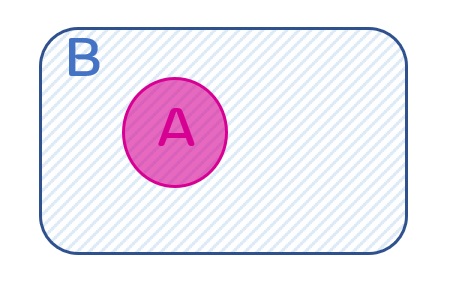 A) Si P(B|A) = 1, alors B est compris dans A.