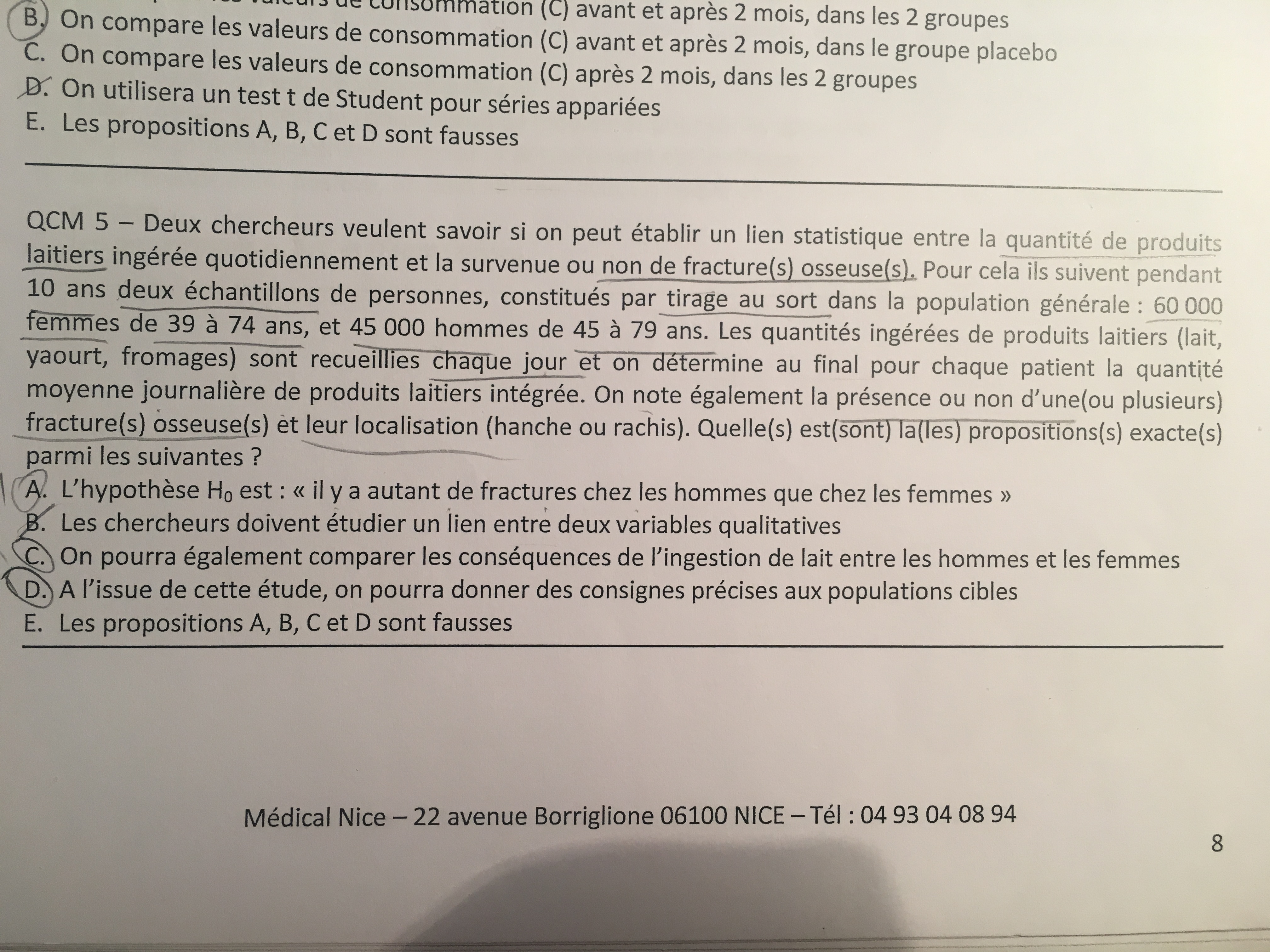 produits laitiers ingérée quotidiennement et la survenue ou non de fractures". En fait on va pas comparer la différence de sexe avec une survenue de fractures mais on va regarder une survenue de fractures par rapport à la