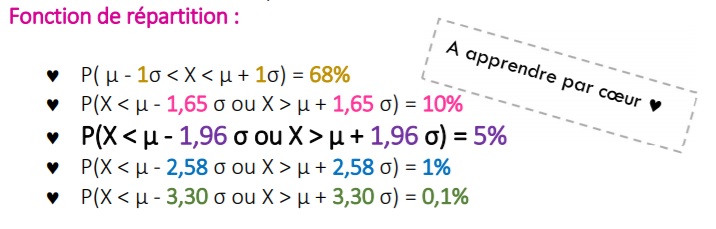 Coucou Emma :) comment tu fais pour savoir à chaque fois les alpha et epsilon correspondant ? Moi j'ai appris ceux de la courbe de gauss qu'il y avait sur la fiche mais je n'arrivais pas à faire les liens avec l'énoncé genre 99,9 alpha =0,01 et epsilon 3,3 ? Merci +++ <3