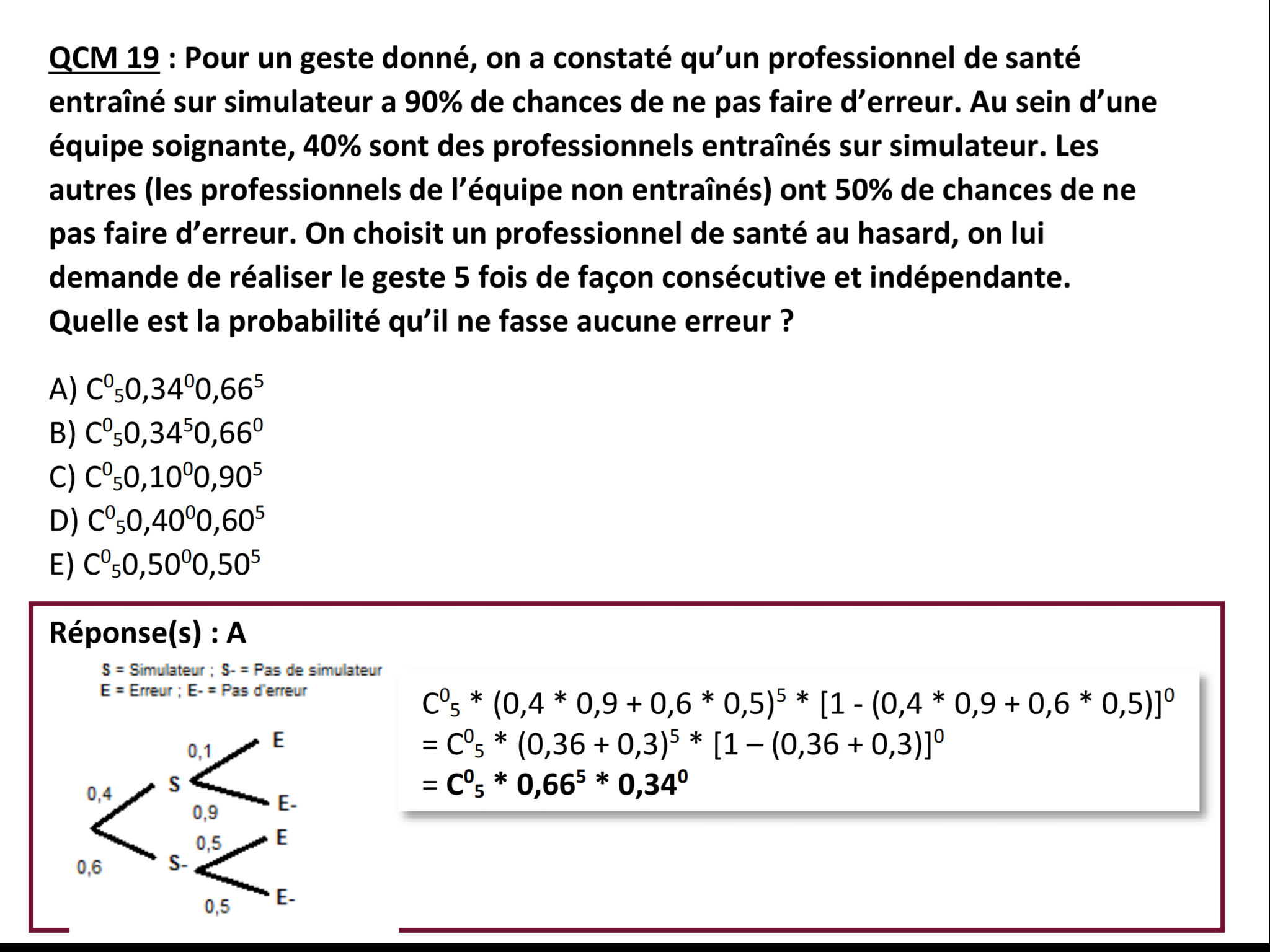 C05 x p0 x q5 = C05 x 0,340 x 0,665La bonne réponse est