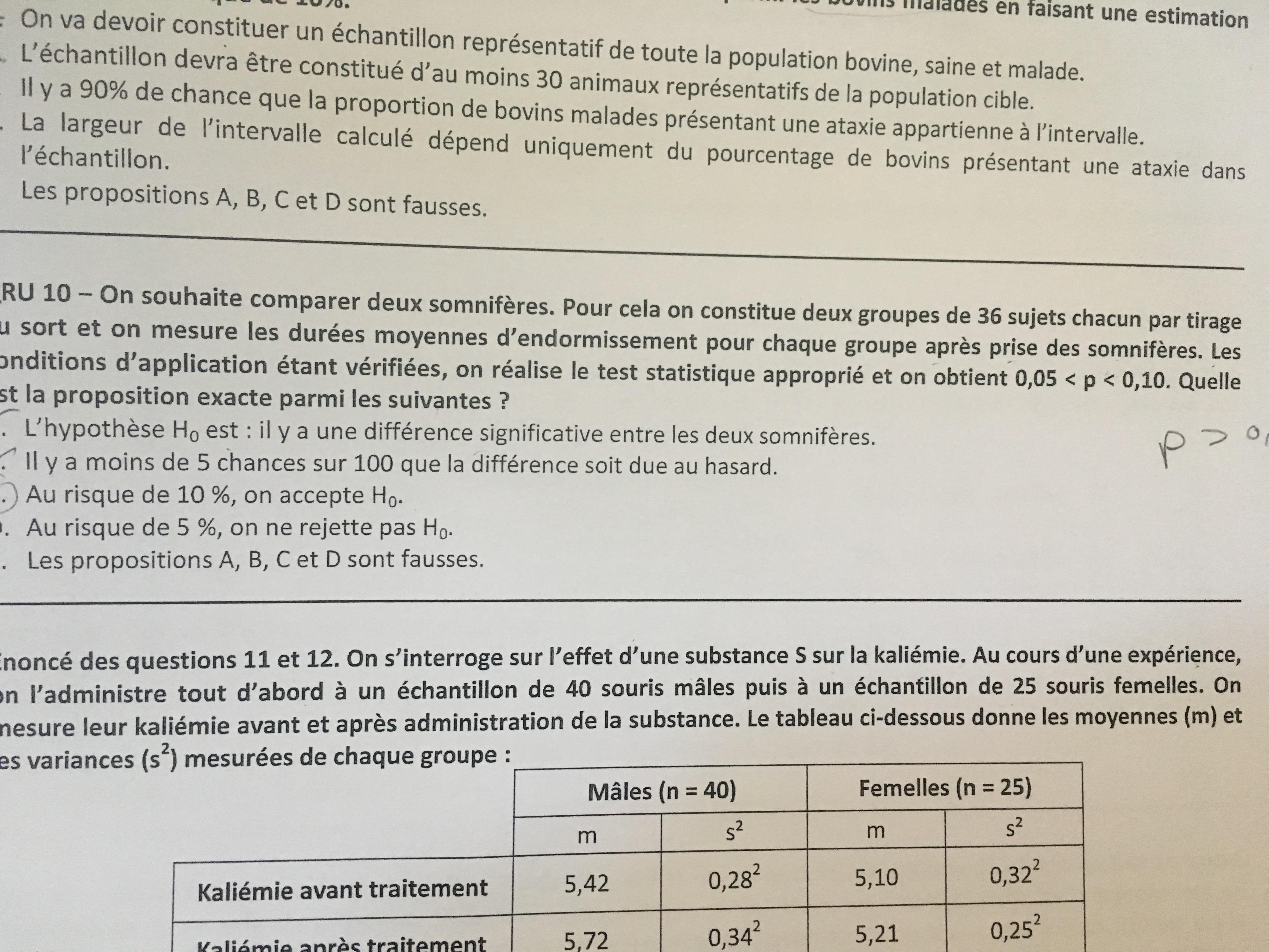 Tout d'abord, si tu n'as pas bien compris ce qu'est le degré de signification (très important comme notion, pour ce genre de QRU +++), ou dans quelles circonstances le calculer et l'utiliser, je te renvoie à ce post :