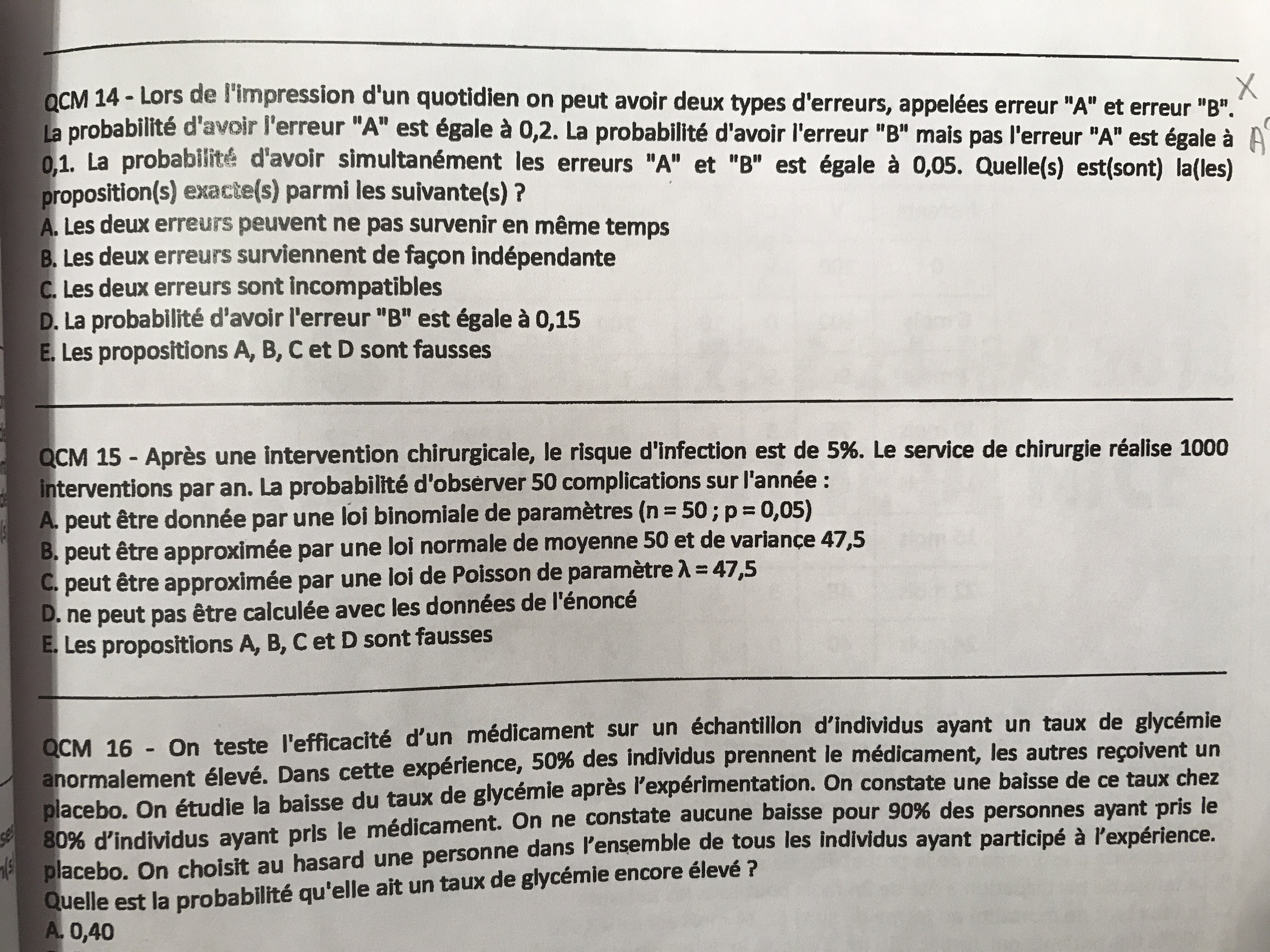 Déjà désolée ,pcq je fais un seul post pour 4 Qcm mais ćest là même annale et sinon c’est trop long et je retrouve pas si les questions sont déjà posées avec pour annale 2012-2013 pcq la co est pas bonne ou je la comprend pas ..
