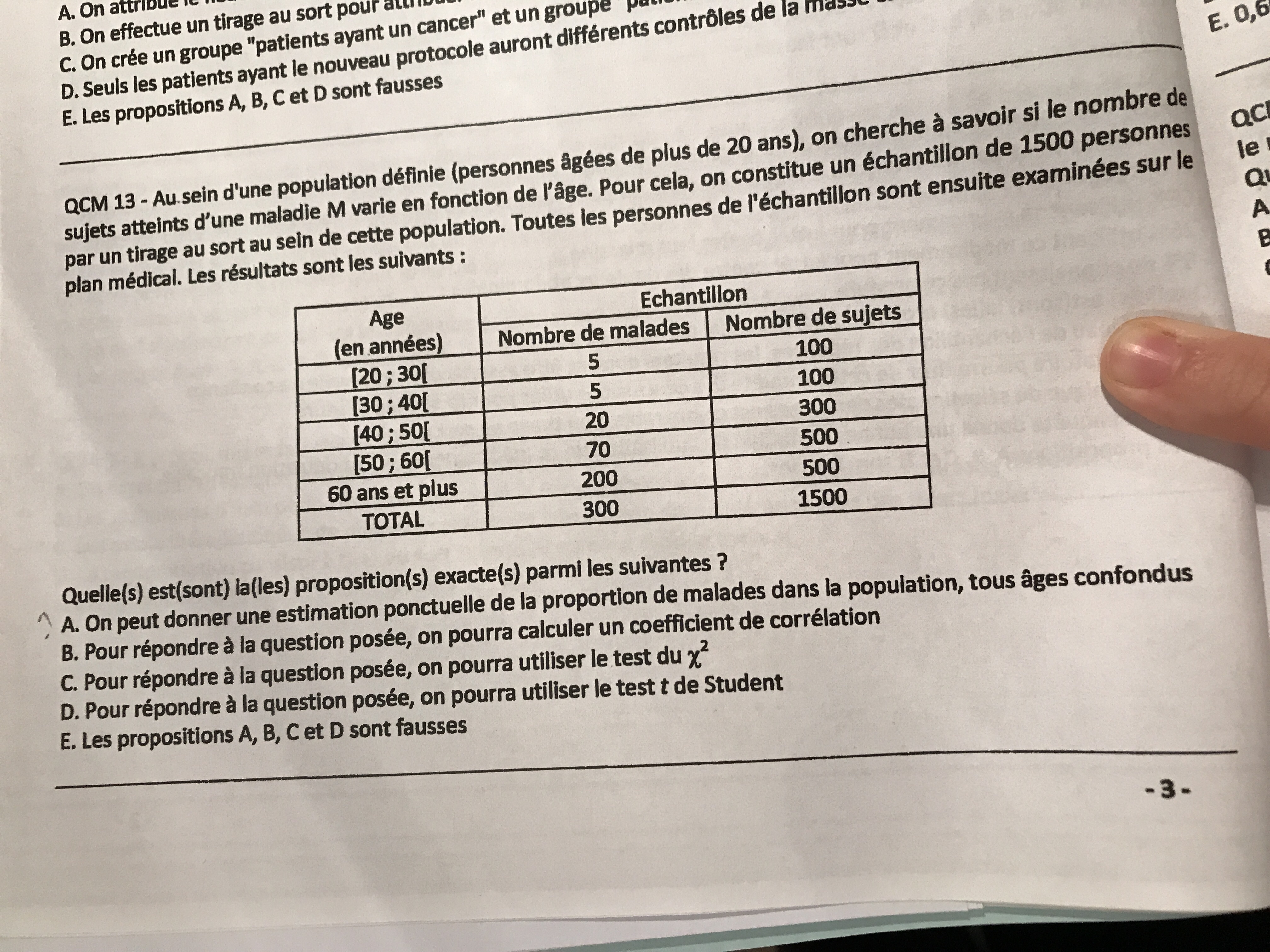 Item A : "On peut donner une estimation ponctuelle de la proportion de malades dans la population, tous âges confondus."