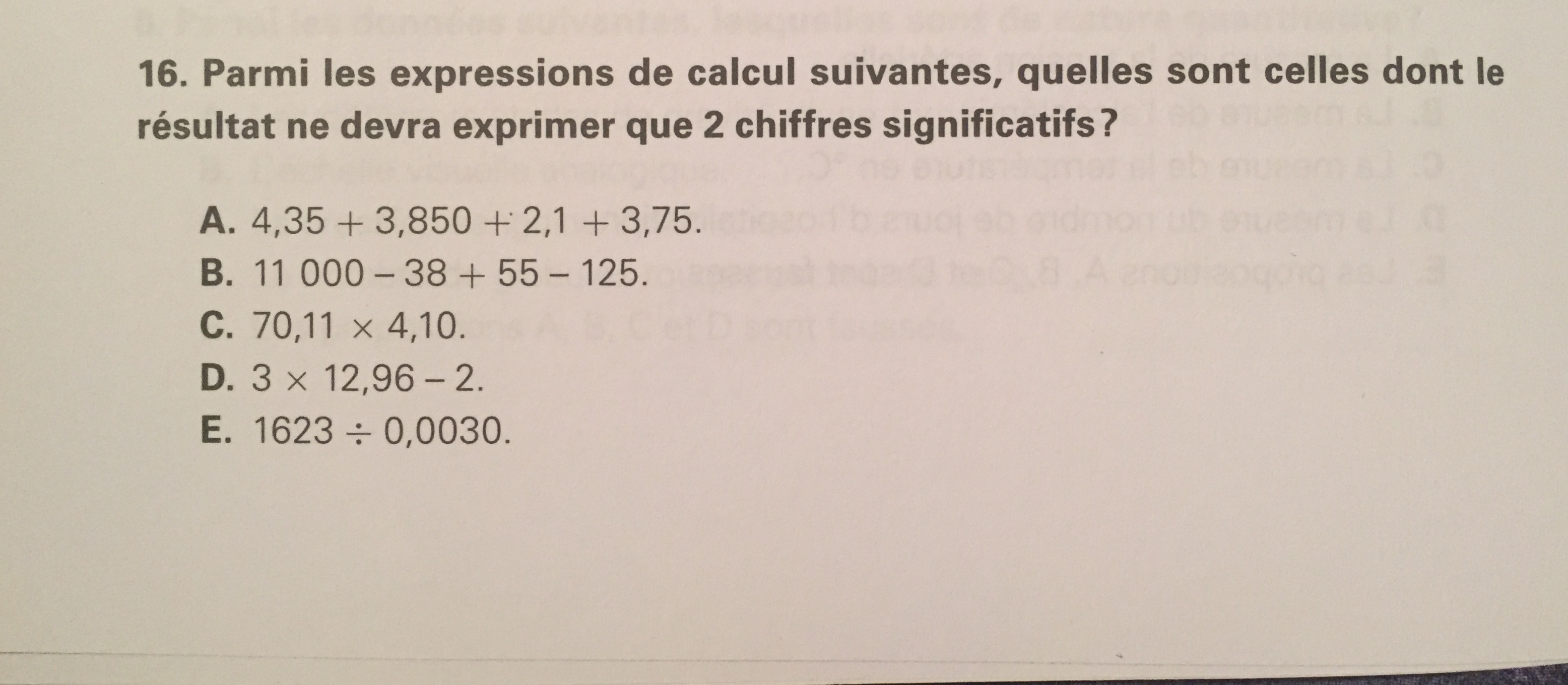 Je ne comprends pas pourquoi les items A et B sont comptés juste sachant que pour les additions/soustractions, il y aura autant de chiffres décimaux que celui qui en a le moins, donc pour moi A et B ont plus de 2 chiffres significatifs. Si vous pouviez m’expliquer, ce serait top!! Merci d’avance