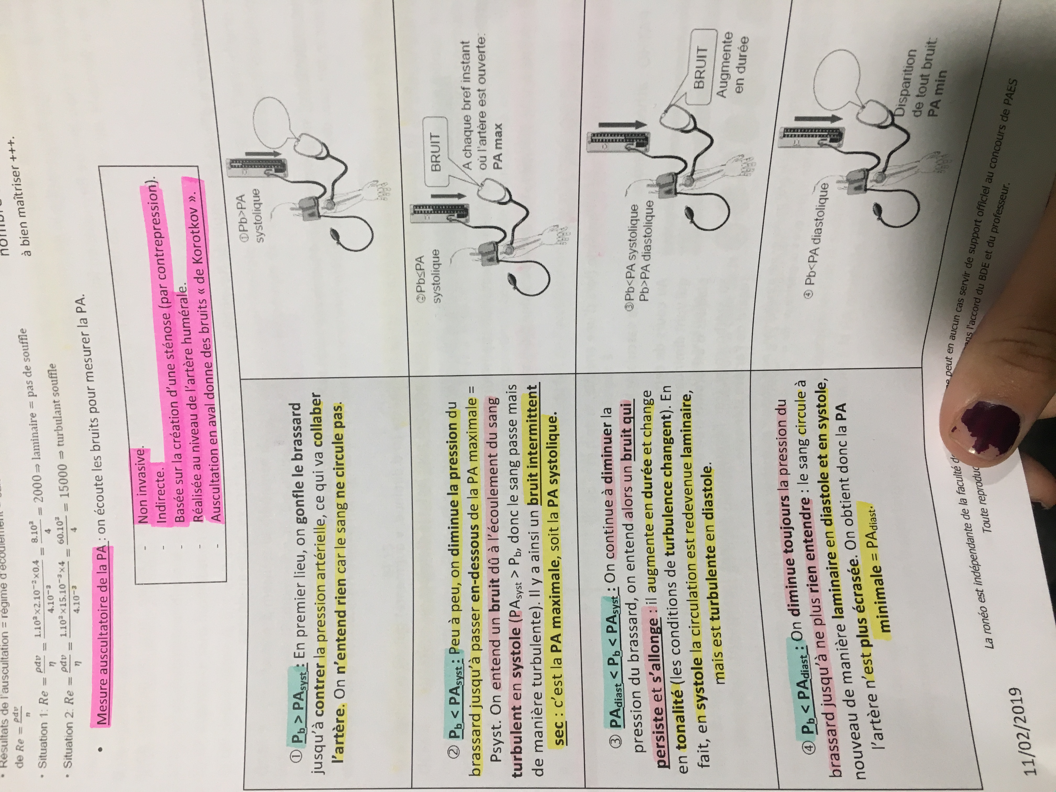 1) Tu gonfles le brassard jusqu'à que Pb soit > à PA systolique
