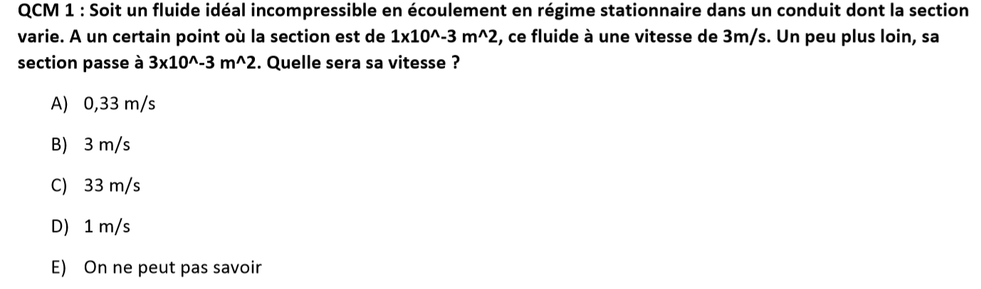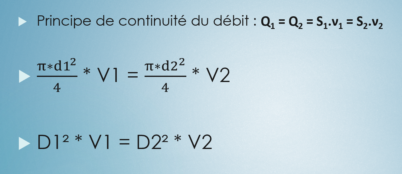 Quand on nous demande de calculer une vitesse à partir de 2 diamètres, et d'une vitesse, on se base sur quelle formule ?