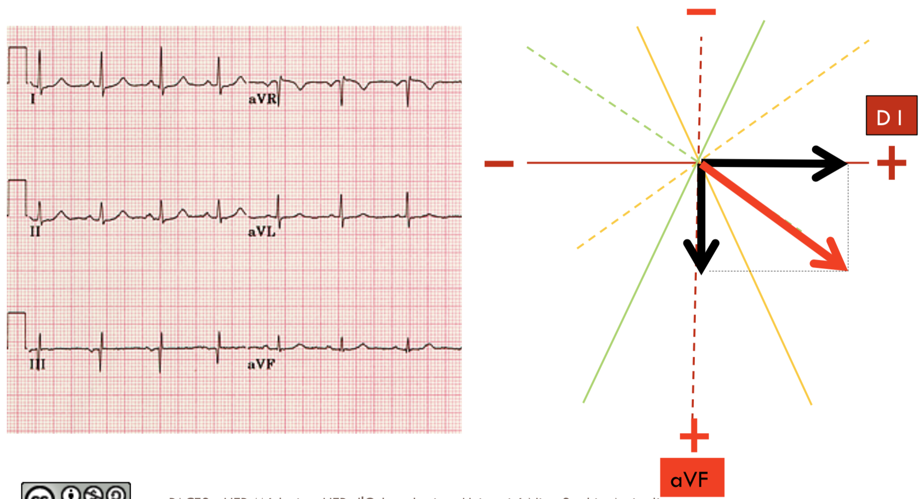 3) Pourquoi pour le cœur la déflexion en avF est négative ? Comme l'axe électrique du cœur est vers le bas, j'aurais pensé qu'elle était positive (on va vers la borne + de la dérivation)