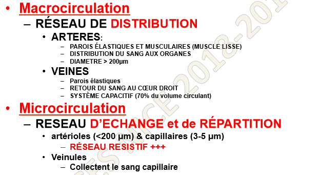 "Les 2 concepts sont différents, macrocirculation= artères + veines. Grande circu=circu G qui comprend de la macrocircu et de la microcircu"