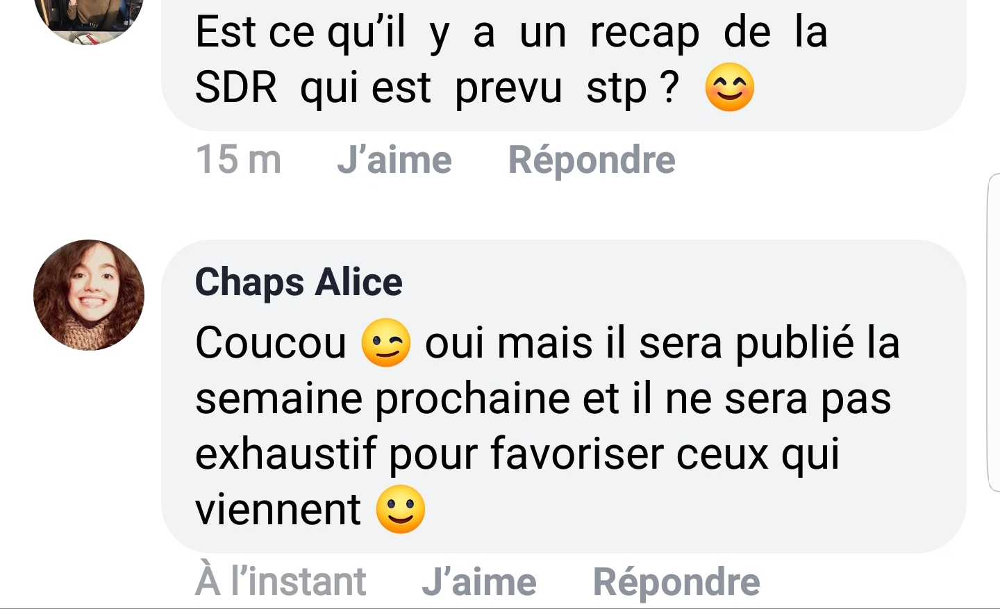 Coucou c’etait Pour savoir si vous aviez prévu de faire un recap de la SDR ? Merci d’avance :)