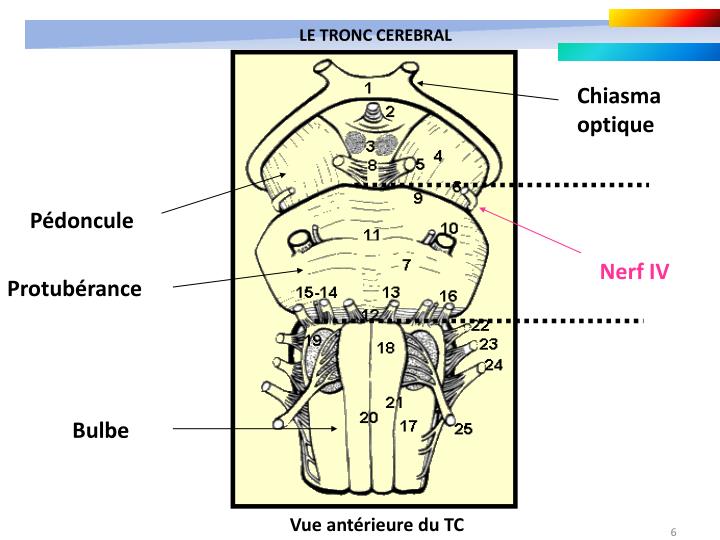 Ensuite, sur ce schéma : tu vois bien les pédoncules cérébraux en 4, entre lesquels on retrouve :