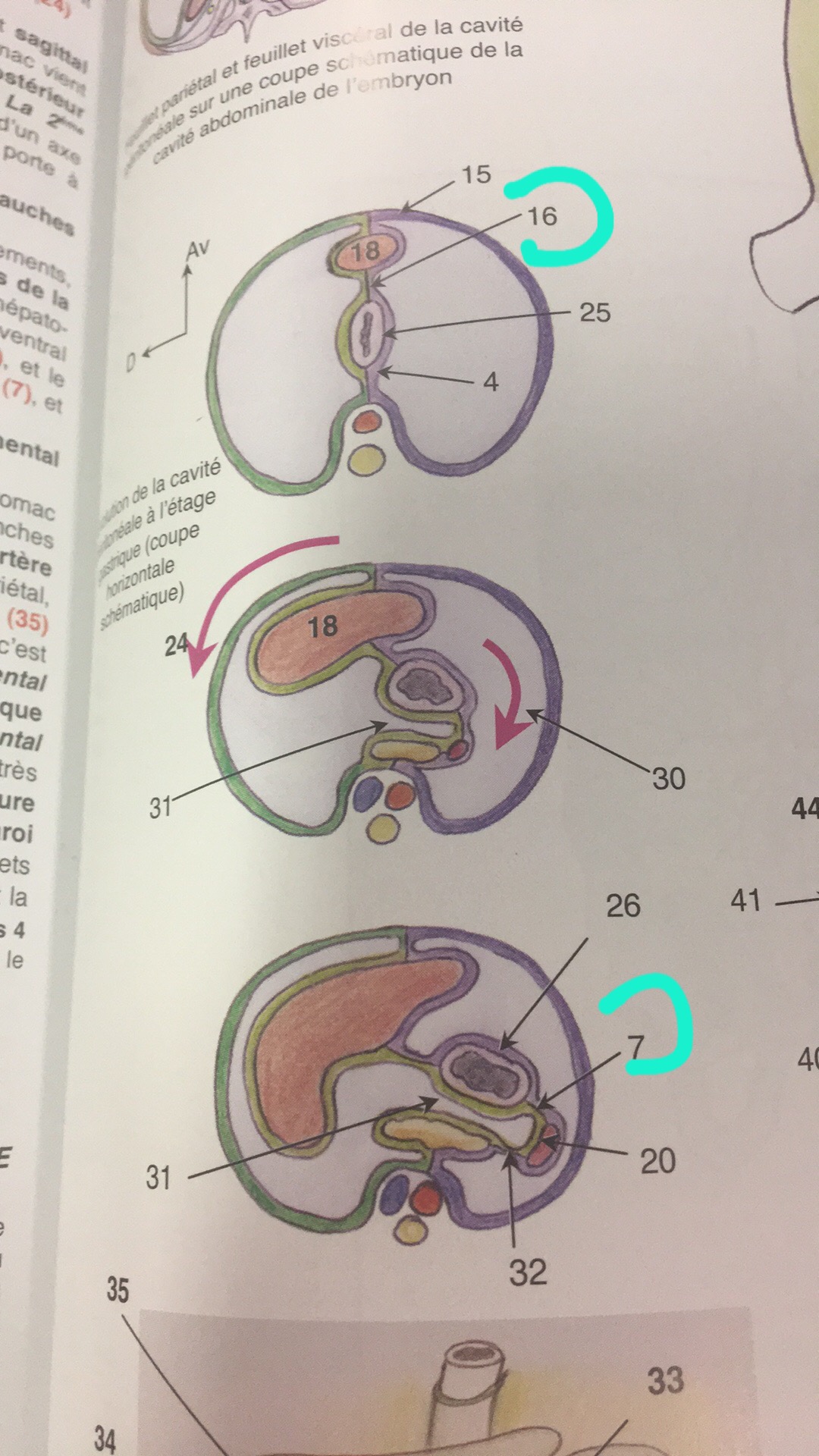 En 16 on représente le mésogastre antérieur : c'est un méso car à l'origine, quand le foie n'était pas encore présent, il rattachait l'estomac à la paroi : or un méso est une formation péritonéale rattachant un viscère a la paroi.