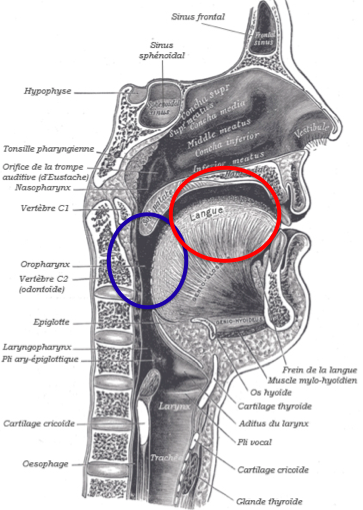 Tu constates que la partie antérieure (2/3 antérieur) est bien horizontale et que la base de la langue (1/3 post) est verticale.