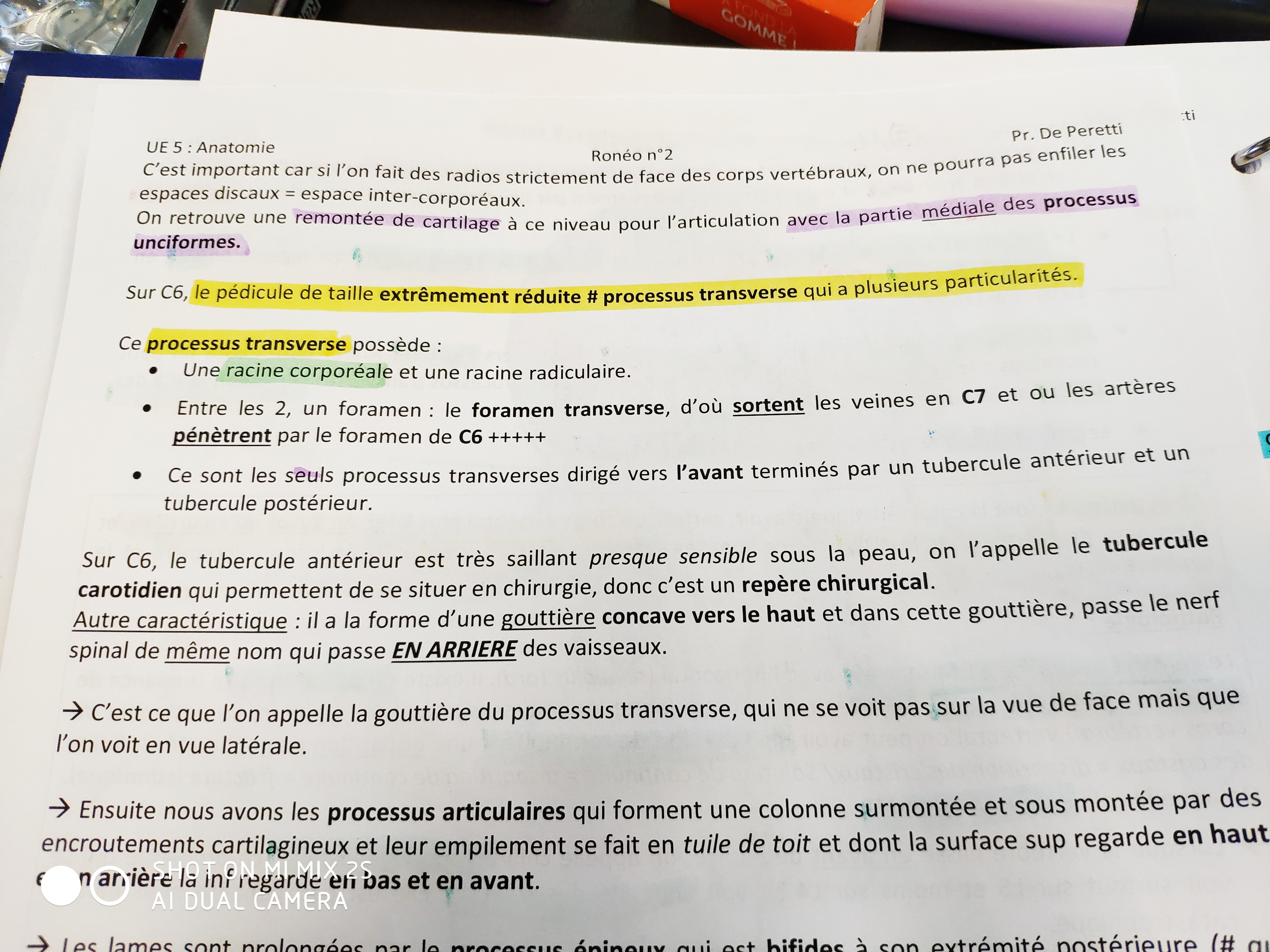Bonjour vous dites a un moment le processus transverse possède : une racine corporeale et une radiculaire et au milieux passe le foramen transverse.