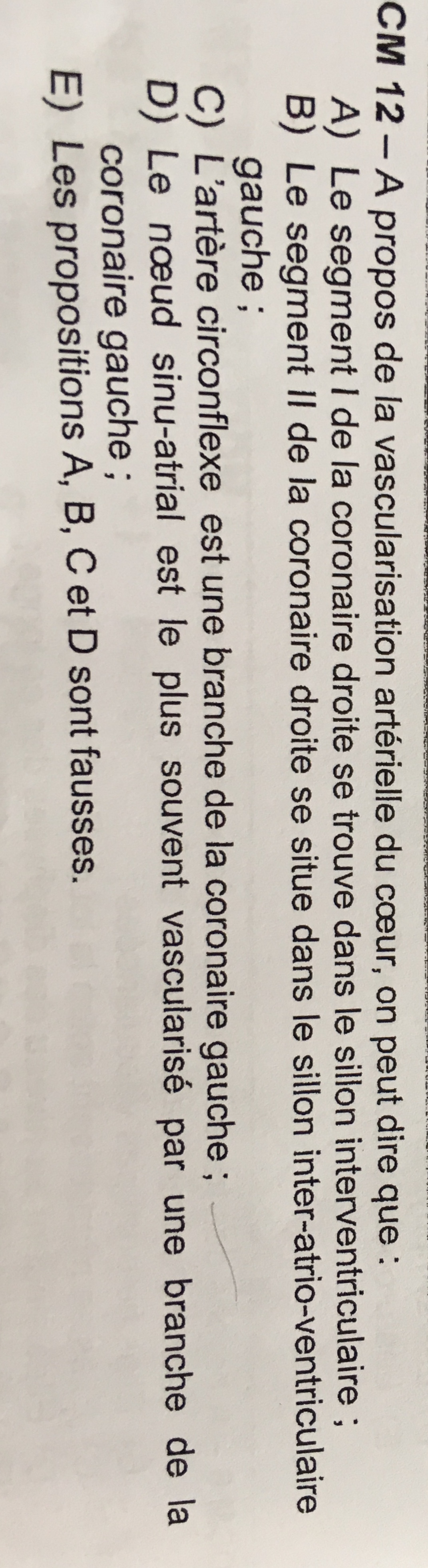 L'item C est vrai car la circonflexe est une branche de la coronaire gauche.