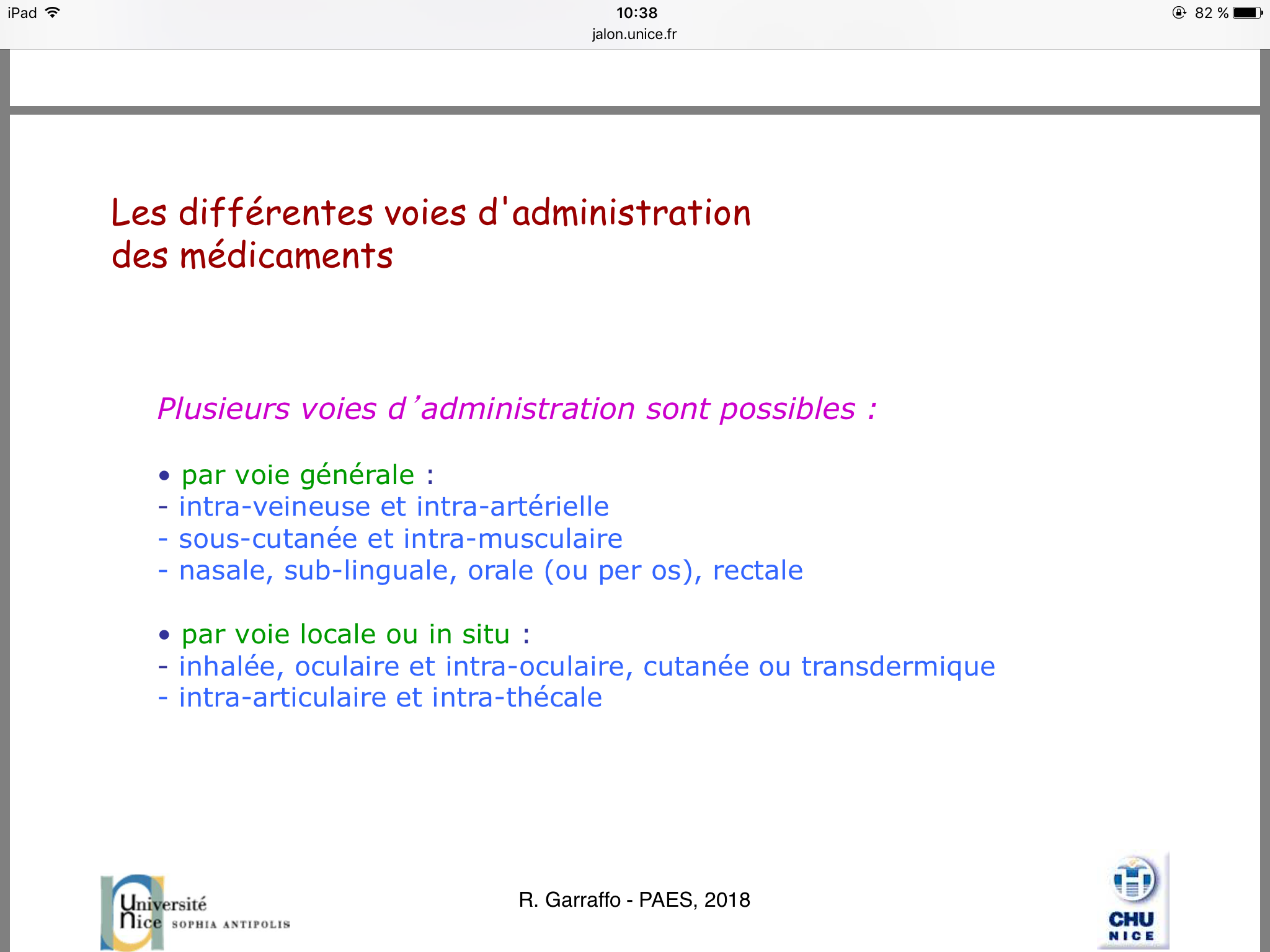 Il y a certaines incohérences dans ces diapos concernant les voies nasales et rectales! Serait il possible de demander au Pr qu'est ce qu'il considère vraiment dans les voies generales et locales ?