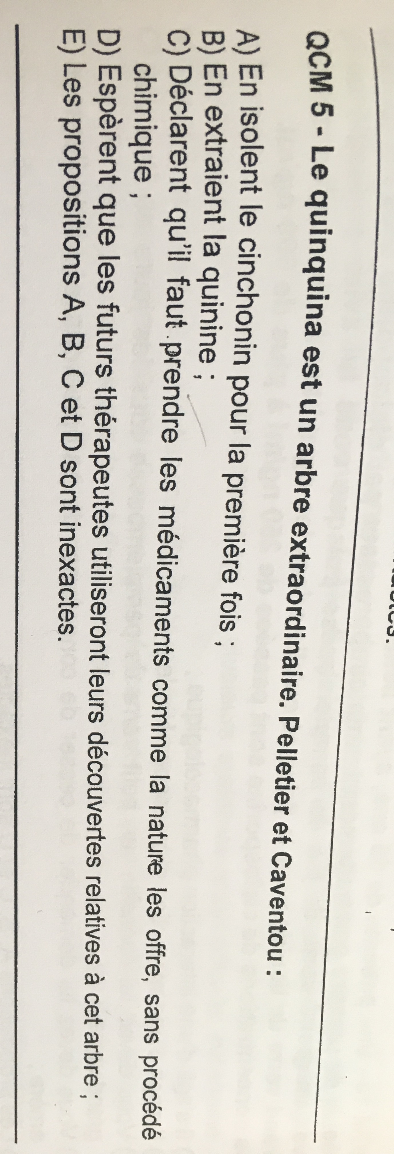 Alors les réponses BD sont les justes concernant ce qcm mais tu as tout qui est répertorié dans les annathemes ou anapotch, sinon sur les anciens CT de pharma