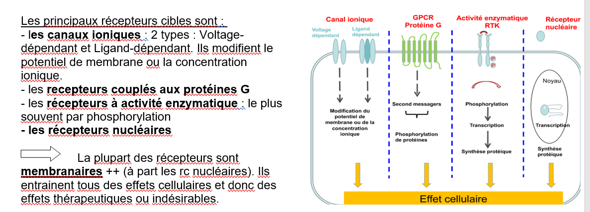 Après pour le "ou effet indésirable" je pense qu'elle a voulu dire que la liaison d'un mdc sur un récepteur peut engendrer un effet théra si c'est la bonne cible du mdc ! un mdc s'il a une affnité réduite pour la cible peut se fixer sur un autre récepteur que celui visé et provoquer un EI !