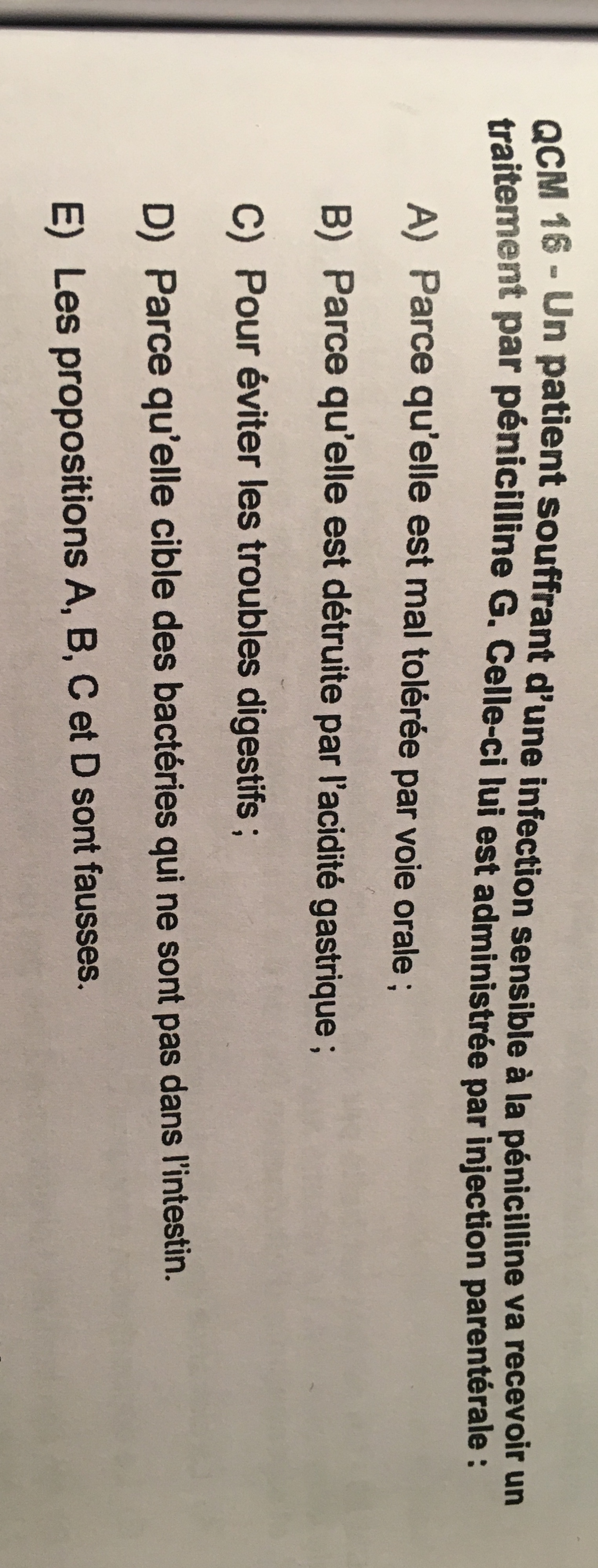 Parce que la pénicilline c'est comme l'insuline elle est détruite par les sucs digestifs.