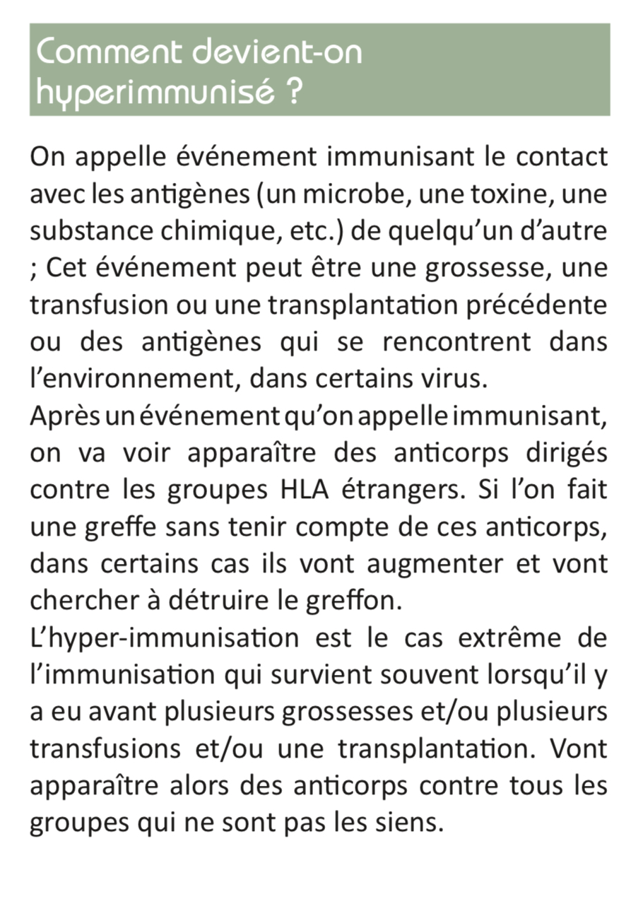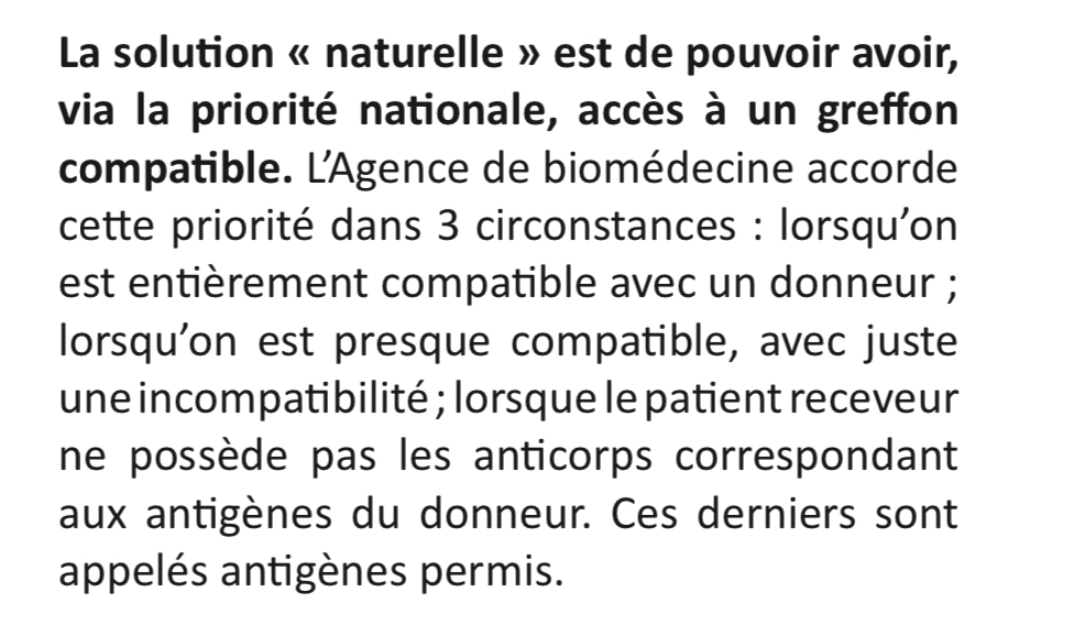 :arrow: Je ne comprend pas pourquoi les patients hyperimmunises (qui ont des Ac qui rendent la greffe plus difficile) sont des malades prioritaires pour la greffe. Ça ne me paraît pas logique :embarrassed: