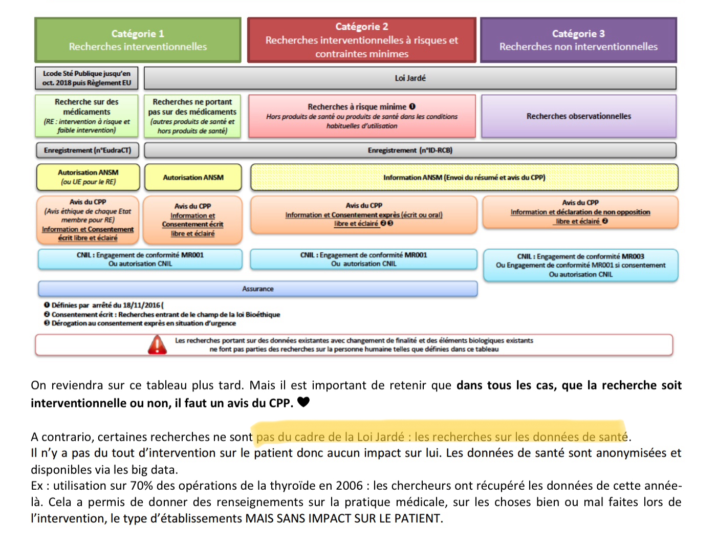recherches sur les données de santé ne sont pas encadrées par la loi Jardé et dans le tableau la seule catégorie non encadrée par la loi Jardé est la