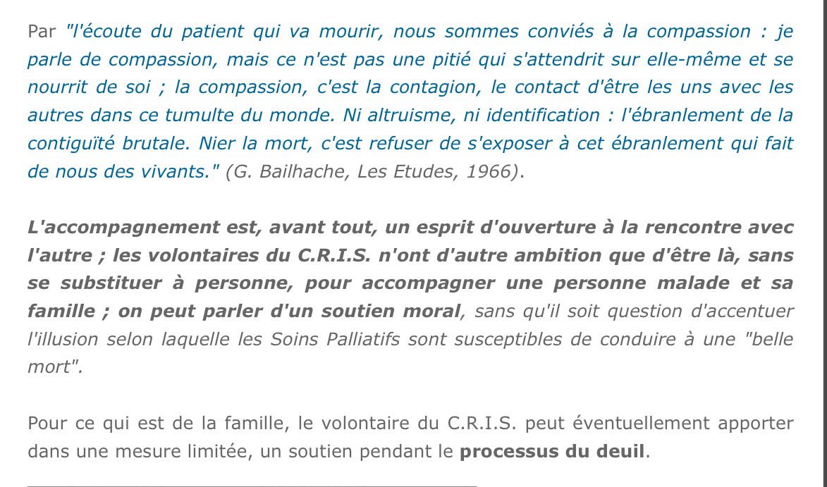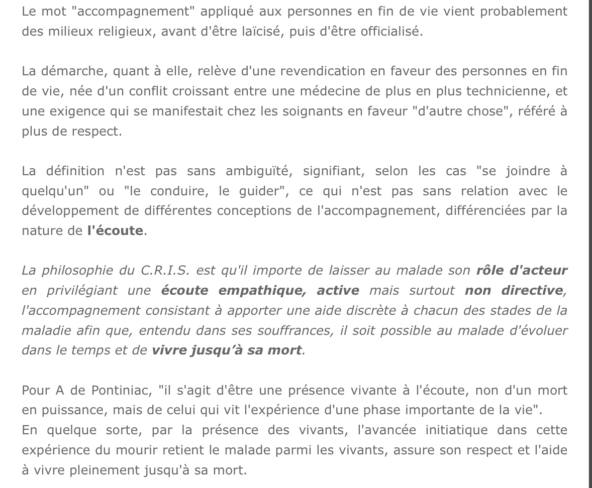 Dans le polycopié du Pr.Chiché il est écrit que les patients en fin de vie sont accompagnés par leur entourage, qu'est-ce qu'on entend par là?