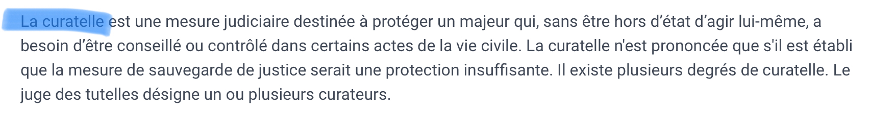 Et si vous pouvez m'expliquer la différence par la même occasion entre tutelle et curatelle j'aimerai bien svp !!