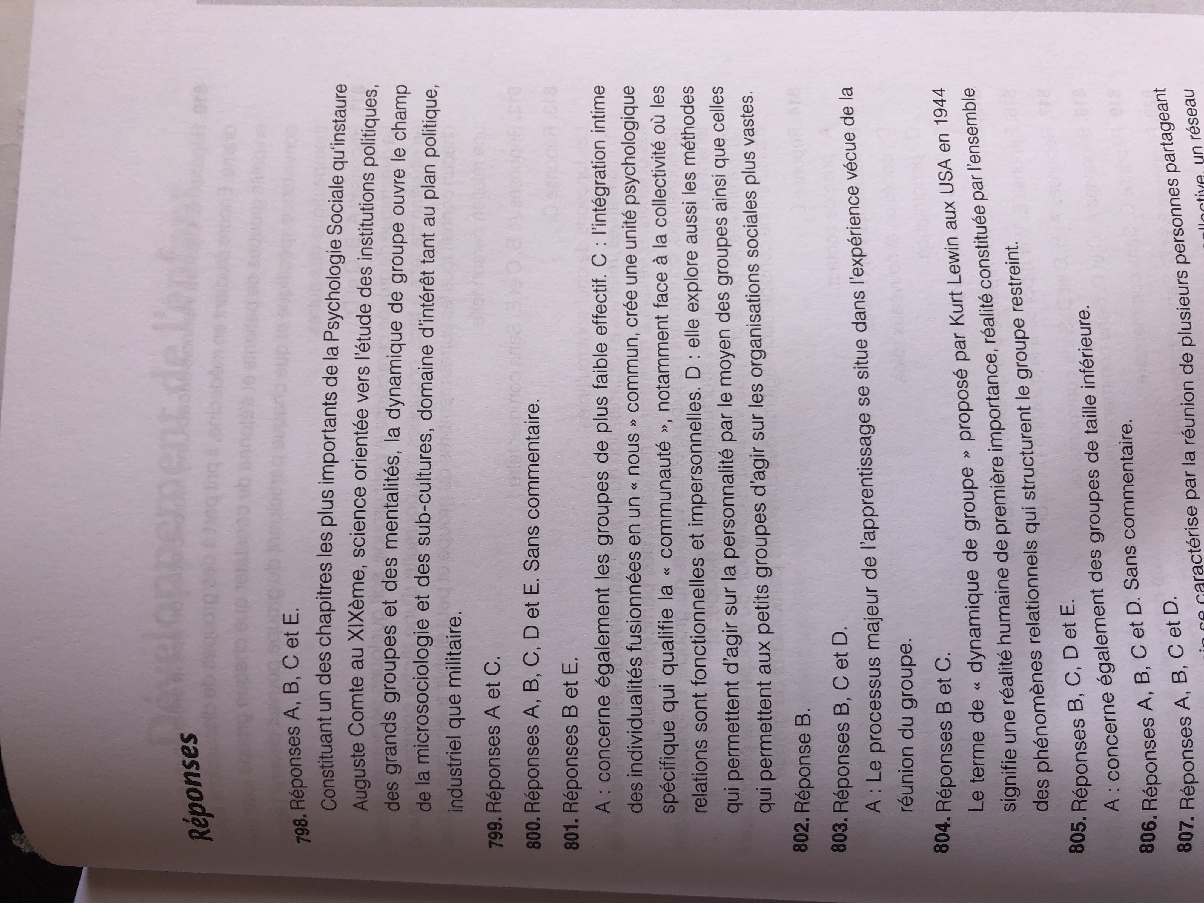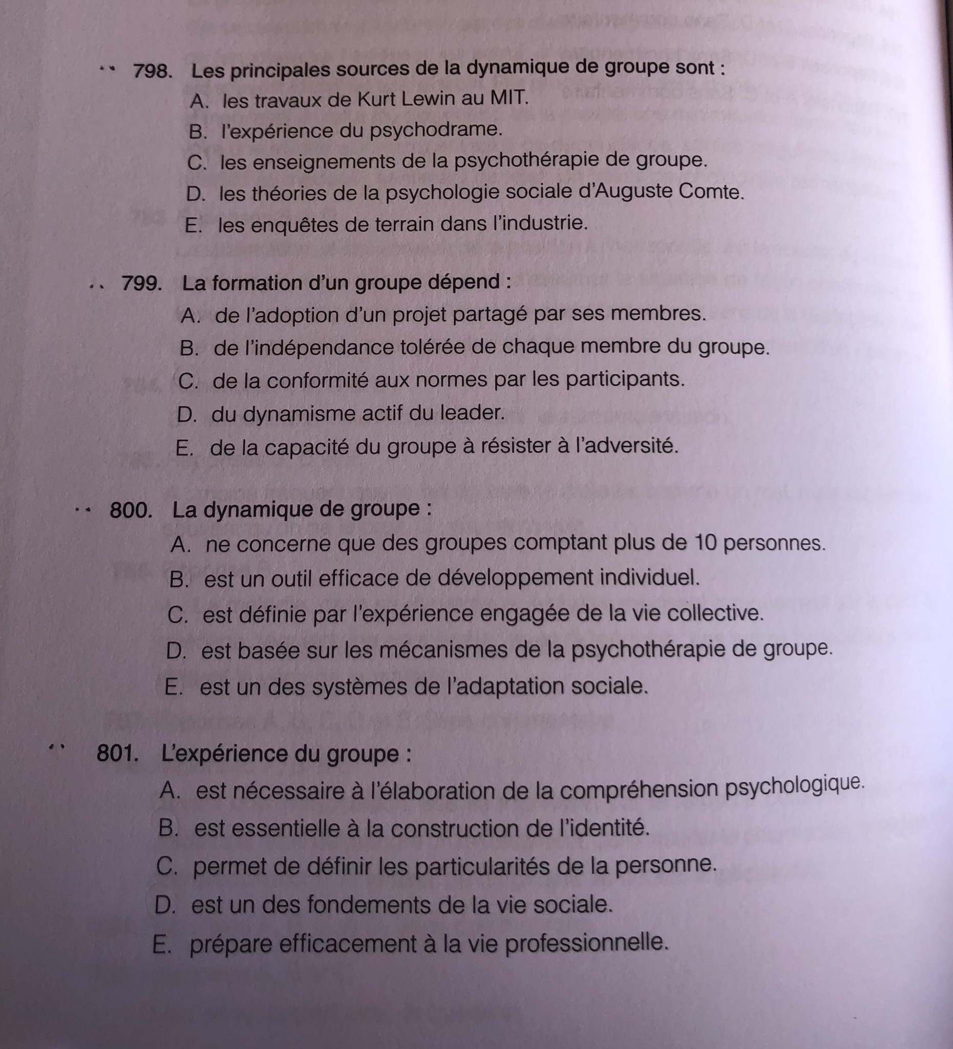 Premièrement les qcms 798 et 802 se ressemblent énormément, et la correction n’est pas la même... Dans le 798 à propos des sources de la dynamique de groupe, le professeur compte juste les enquêtes industrielles, et dans le 802, non. Que retenir ?