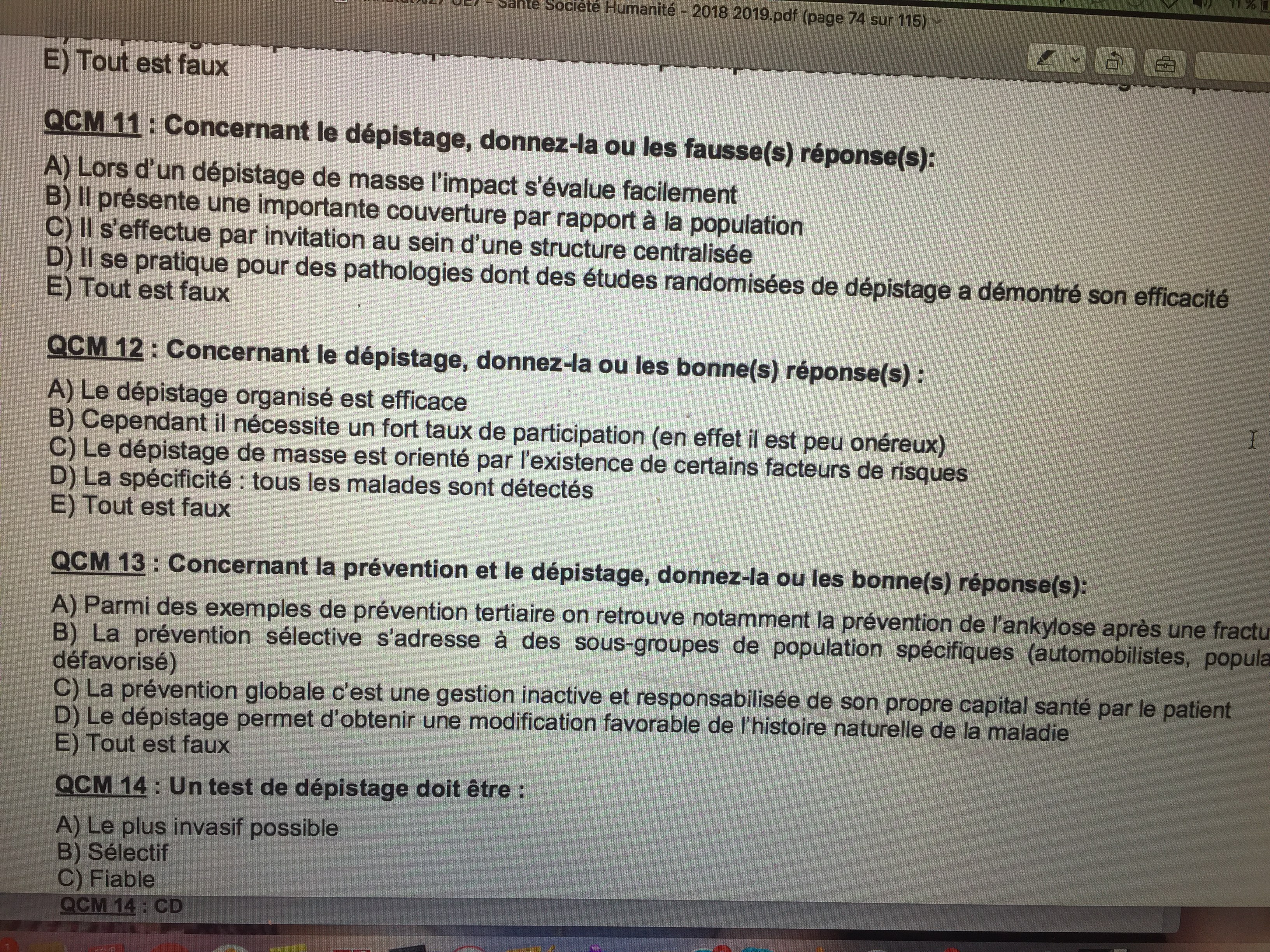 Je pense que les items BCD font référence au dépistage de masse car cité dans l'item A.