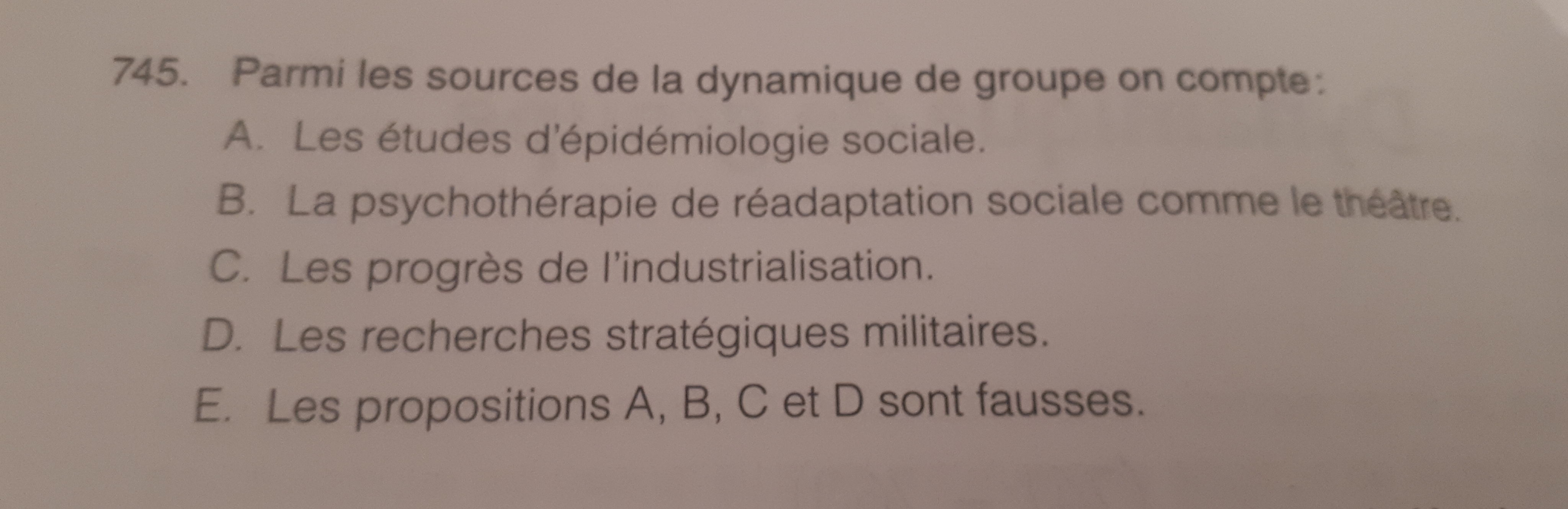 Mais c'est un Qcm tiré du livre (Attention les items ne sont pas dans le même ordre dans le livre), et le livre donne pour seule réponse la C des annales --> le théâtre.