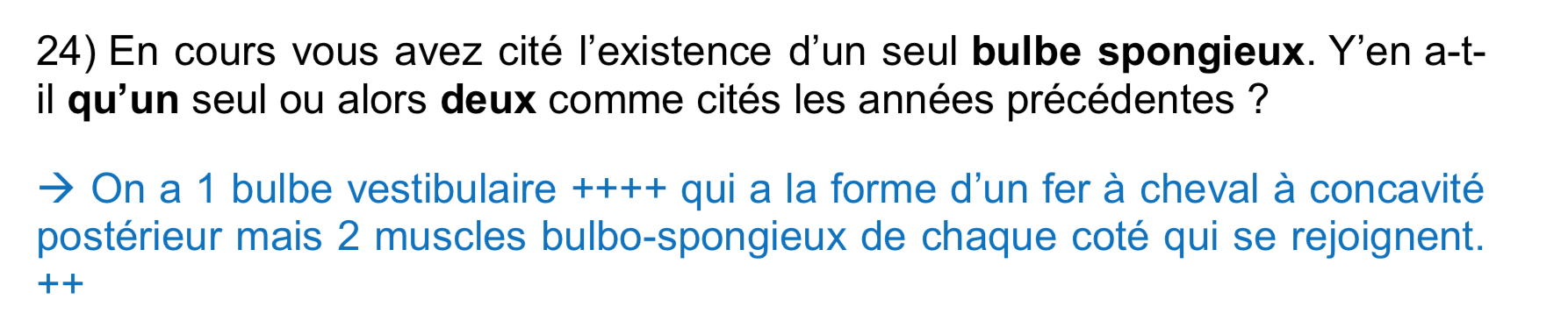 mais y a un item qui est compté juste ou il y a écrit "Le clitoris et les bulbes vestibulaires constituent les corps érectiles de la femme" or ça présuppose qu'il y en aurait deux...
