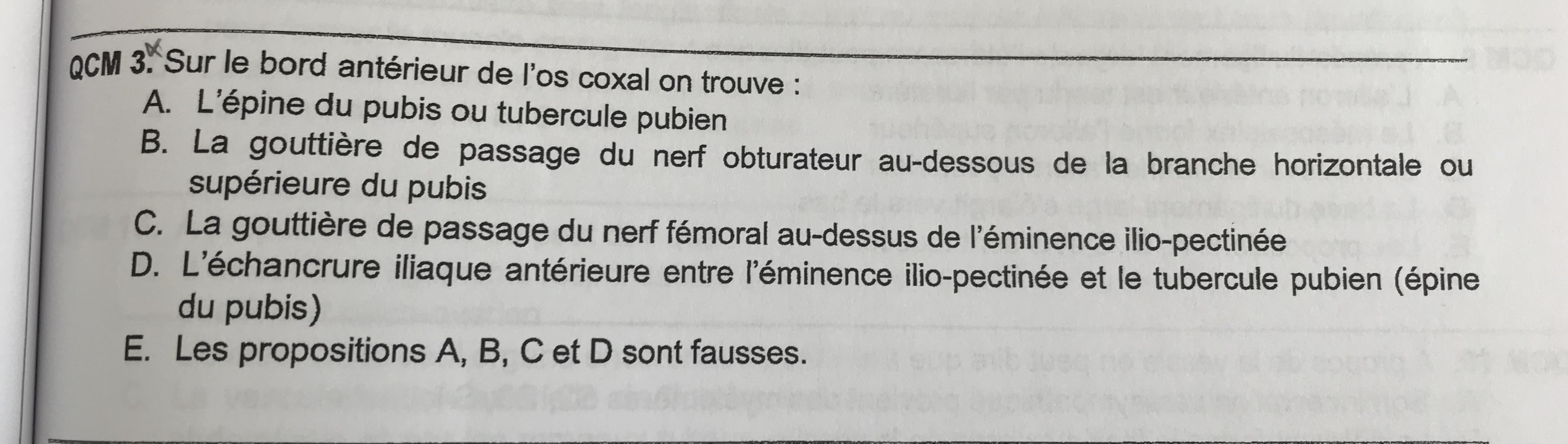 Ces deux items sont des distracteurs, à aucun moment dans le cours on évoque la présence d’une gouttière du nerf fémoral ni même du nerf obturateur au niveau du bord antérieur de l’os coxal