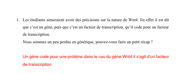 Il dit que WNT4 code pour un facteur de transcription contrairement a ce qu’est dit dans la roneo :(