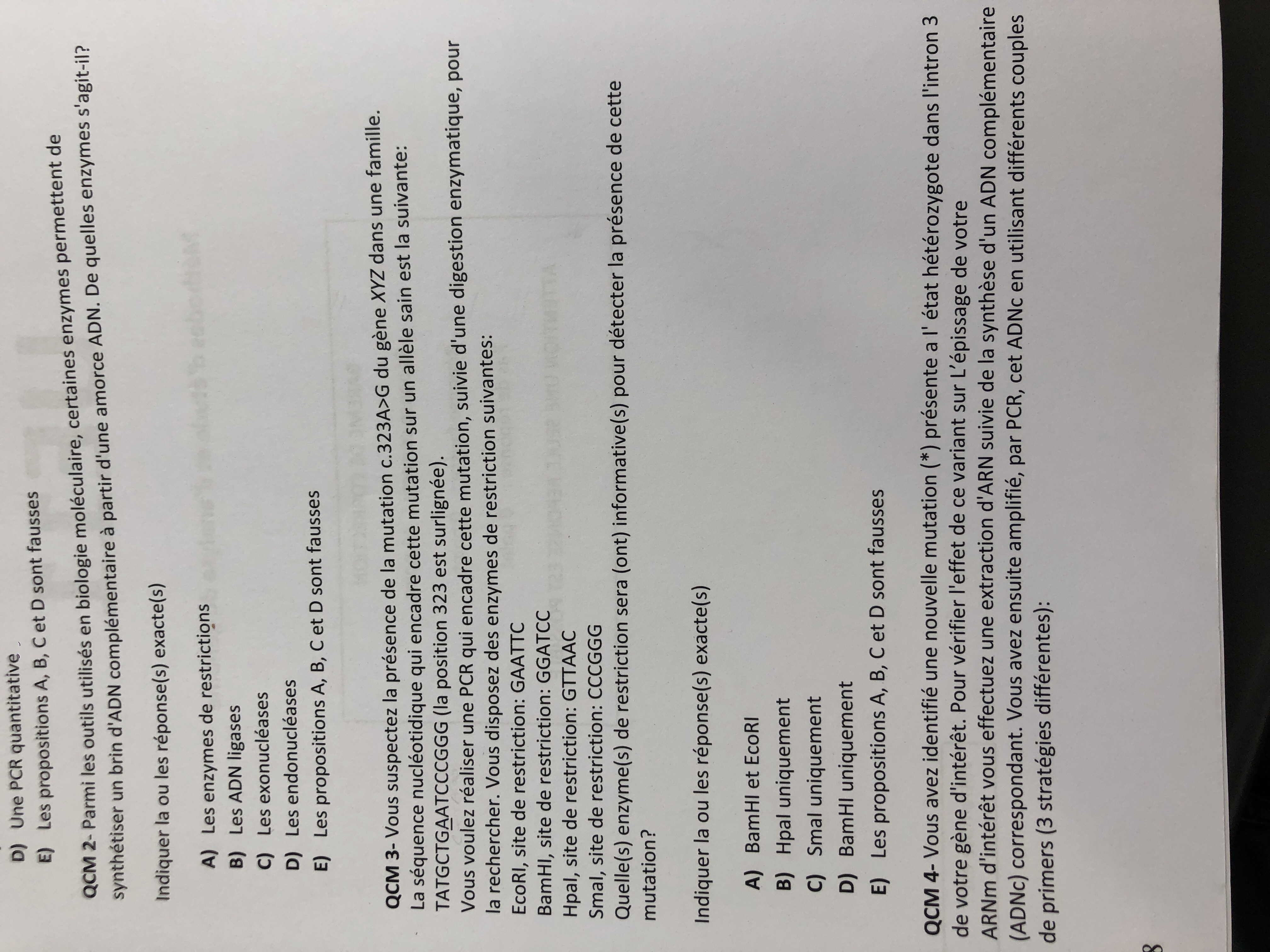 Dans ce qcm on nous dit que la bonne enzyme pour couper la mutation est BamHI, je suis d’accord. Mais je voulais savoir au sujet de EcoRI est-ce que si on cherche à couper l’allèle sain on aurait pu l’utiliser ? car EcoRI = GAATTC or la séquence est GAATCC