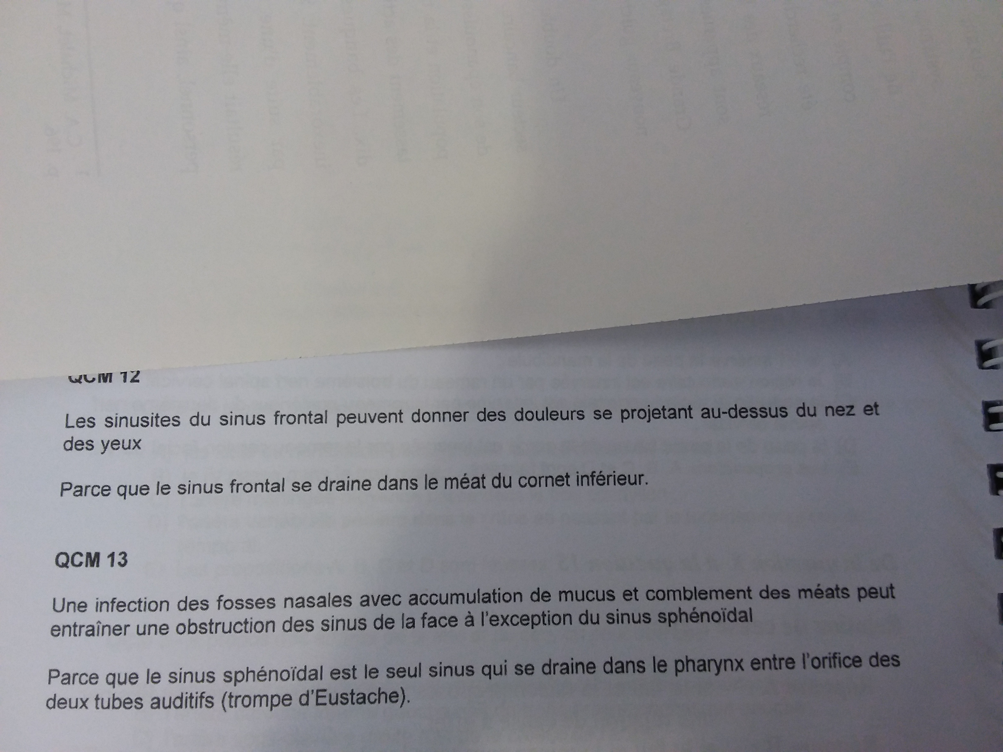 13) on est d'accord que la réponse est E parce que sinus sphenoidal n'a rien de plus que les autres sinus, il sera comme tous le monde obstrué n'est ce pas?