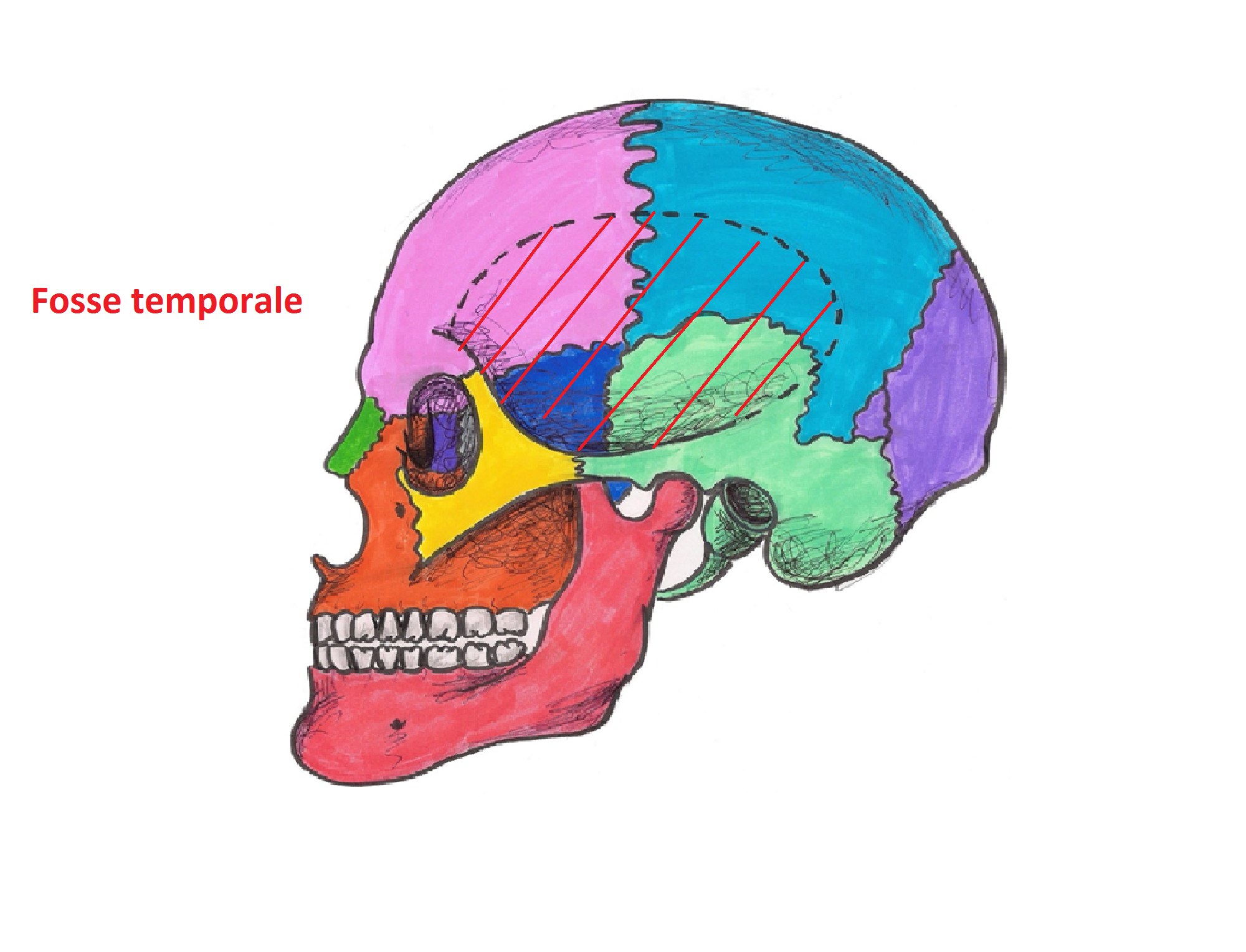 Pour cet item je ne vois pas ou c'est marqué dans la ronéo que le muscle du temporal s'insère sur le pariétal et concernant le schéma je trouve qu'ils est un peu ambigüe sur la délimitation des os.