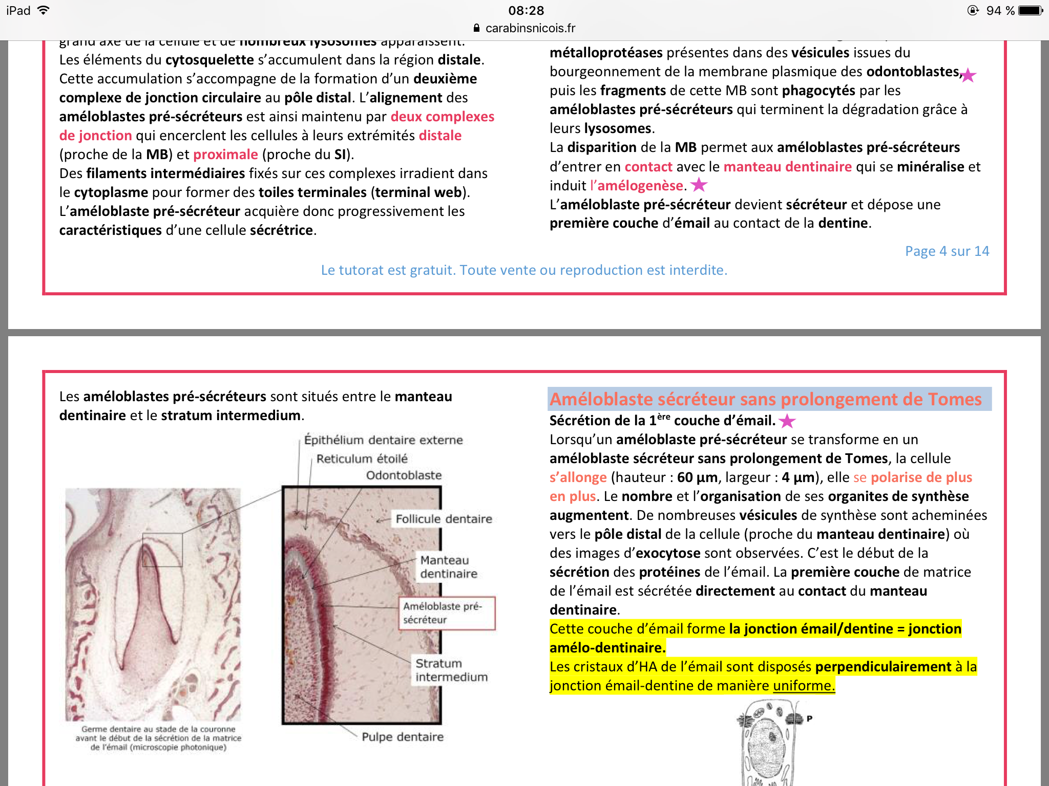 Il me semble qu'il y a une ptite contradiction dans la fiche (entre la derniere phrase de la p4 et la premiere phrase du paragraphe "ameloB secreteurs sans prolongement de tomes")