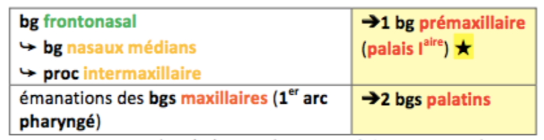 ça sous entend que c’est la confluence des bourgeons nasaux médians ET du processus intermaxillaire qui donne le palais primaire alors que le bnf donne les bnm qui donnent le processus intermax lui même donnant entre autres le palais primaire