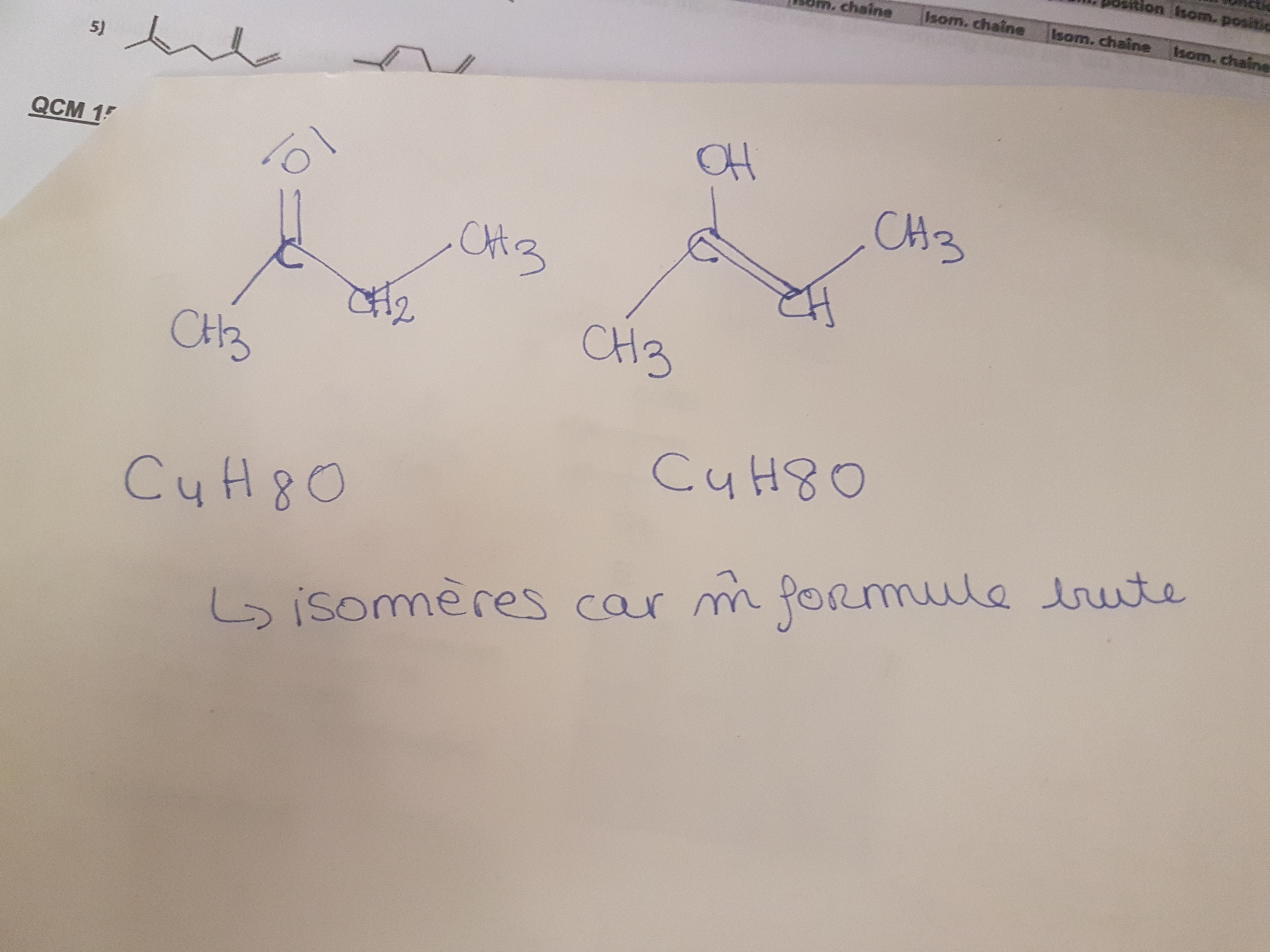 Salut ! Je pense que c’est une erreur , pour moi, ces deux molecules ont la meme formule brut, mais une formule developpé différente. Ce sont bien des isomères. Bon courage