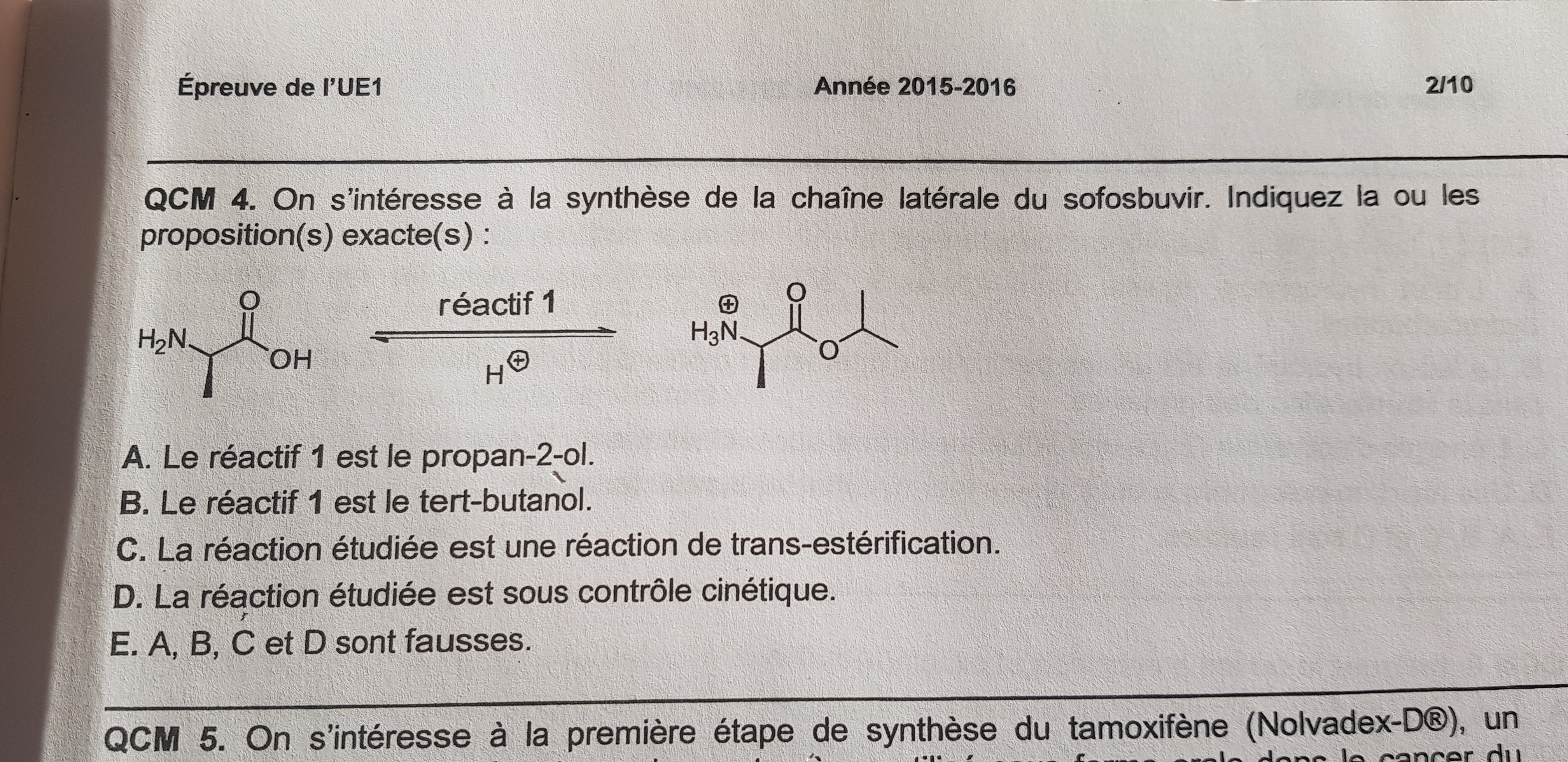 Pour cette réaction, la tutrice de l'époque à mis l'item D vrai en disant que "on utilise une catalyse acide, le contrôle est donc cinétique"... Je comprend pas trop trop : le proton ici sert à faire une réaction acido basique -> contrôle thermodynamique non?