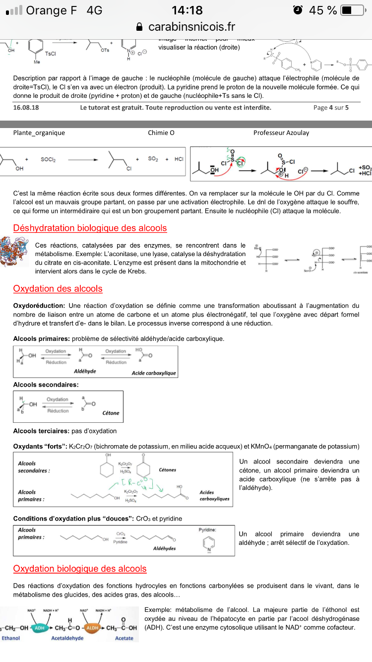 l'item C du QCM 10 est compté faux (et donc par conséquent D est juste) mais je ne comprend pas pourquoi le KMnO4 ne donne pas d'acide carboxylique sur un alcool secondaire? Pour moi c'était valable sur tous types (je pense que j'ai du loupé un truc dans le cours
