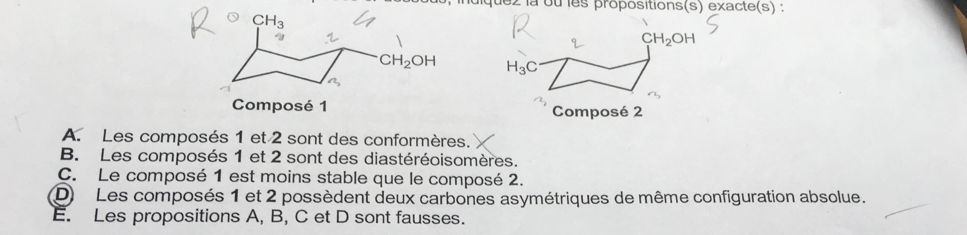 Pour que ce soit des conformères tu aurais aussi du avoir un changement de position au niveau du cycle tu vois sur le diapo du Professeur les deux chaises ne sont pas positionnées de la même manière.