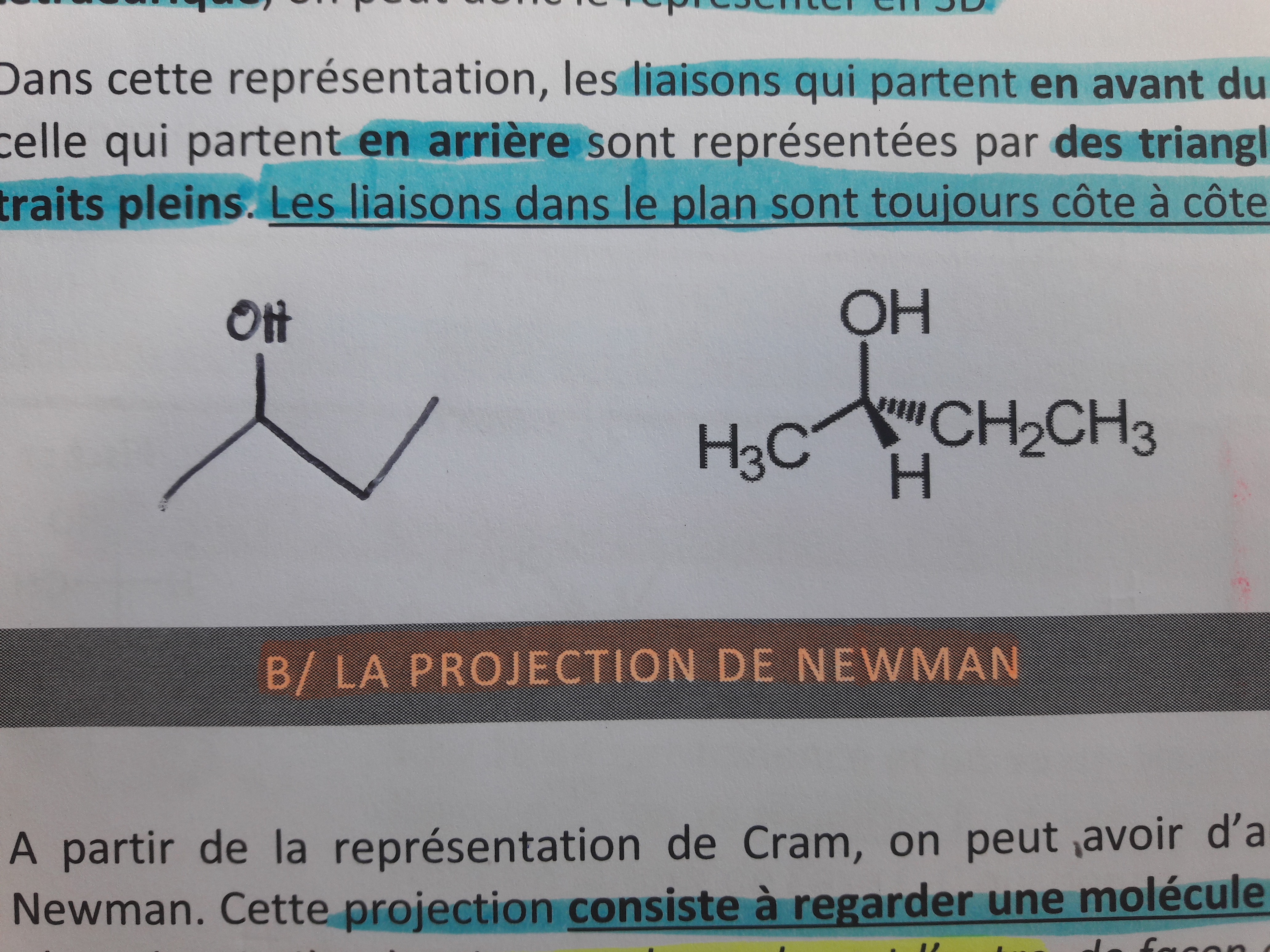 Alors en fait , tu peux passer d’une representation topologique a une representation de cram , mais il n’y en a pas une qui est juste , et l’autre qui est fausse , les deux sont justes ( soit l’ethyl en avant, soit l’ethyl en arriere ).