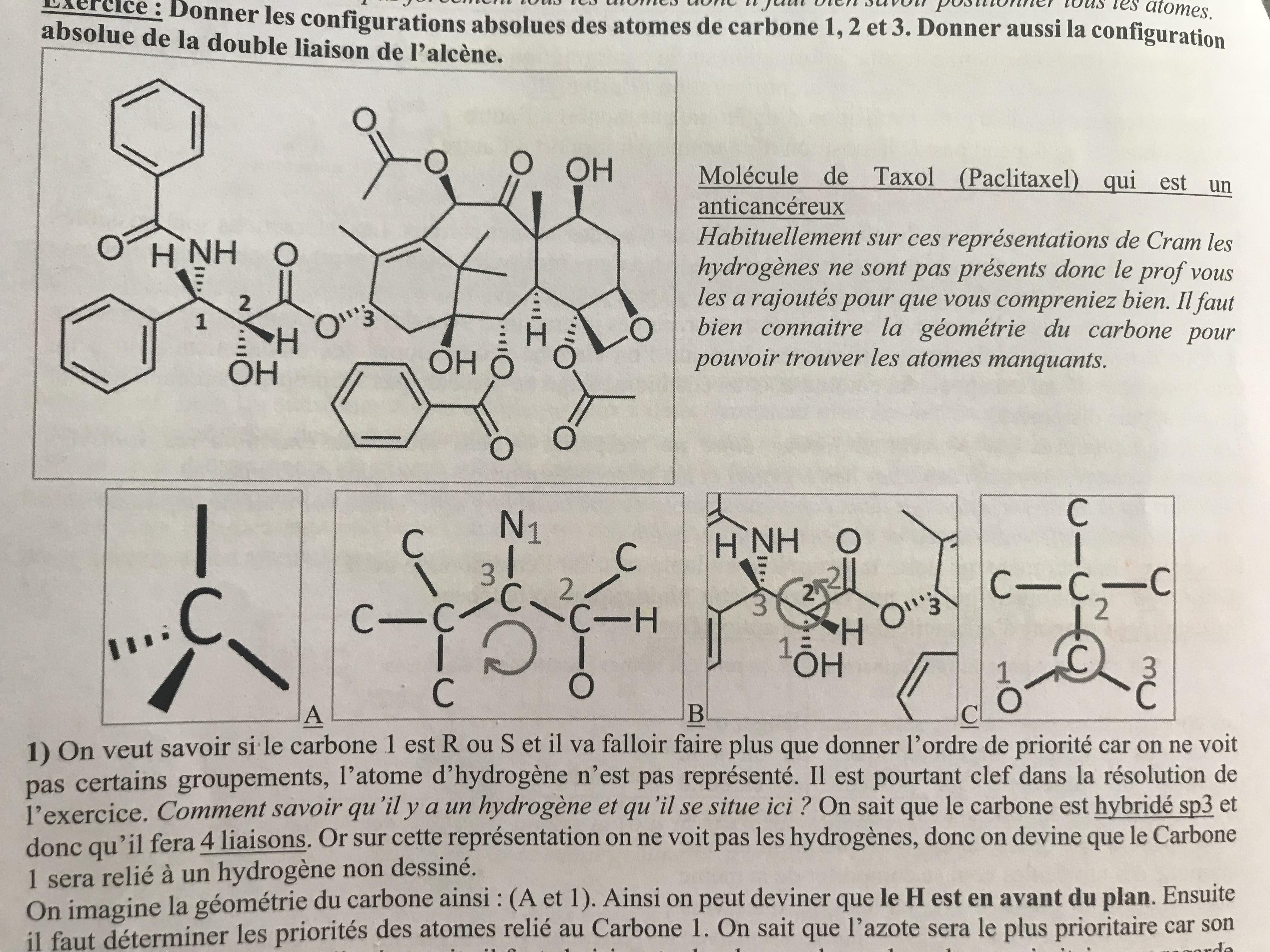 Dans la ronéo 2 page 10, il est écrit que "on imagine la géométrie du carbone avec le H en avant du plan" (dans l'image A)